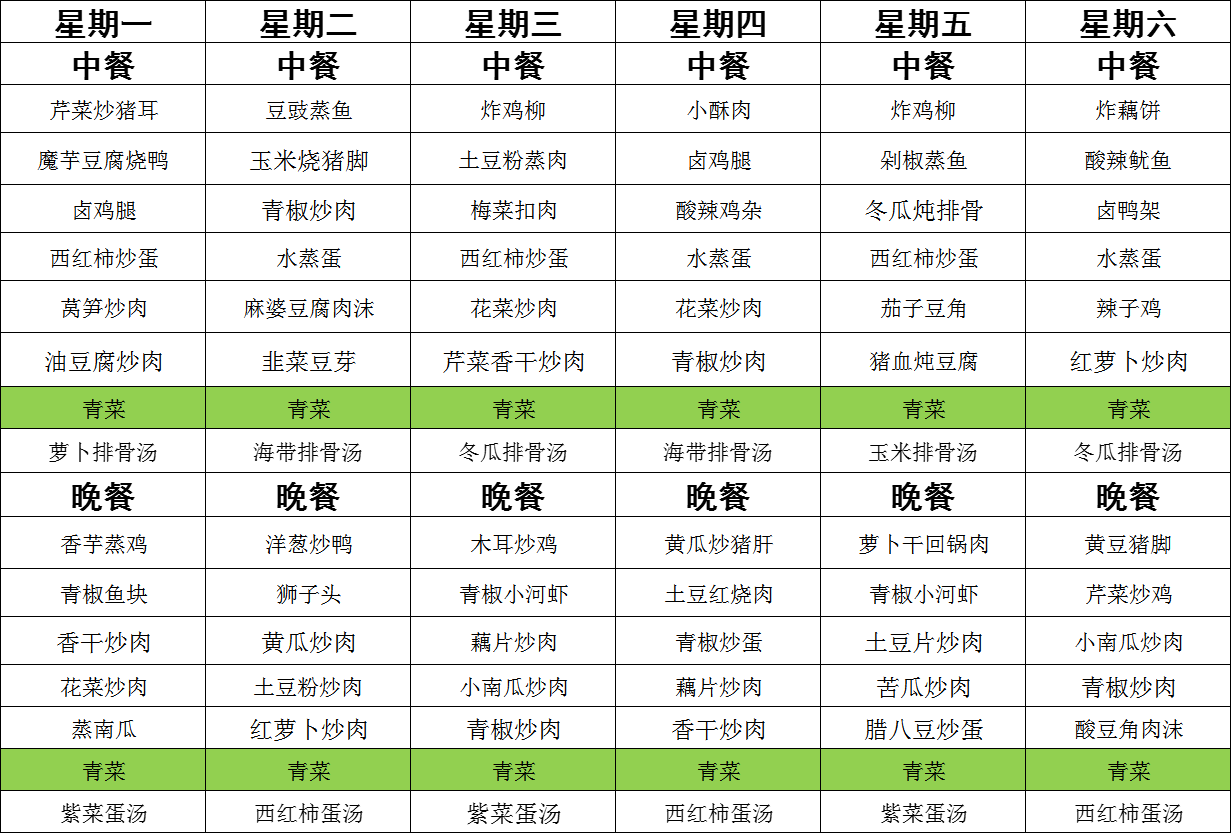 每周菜谱
