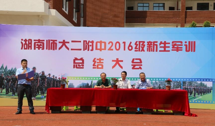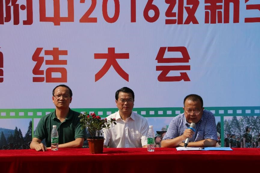 9月2日下午,我校田径场举行了2016级新生军训总结大会。校长张胜利、校监肖建新、校长助理余柏青、高一年级组全体师生和部分家长代表参与了本次总结大会。