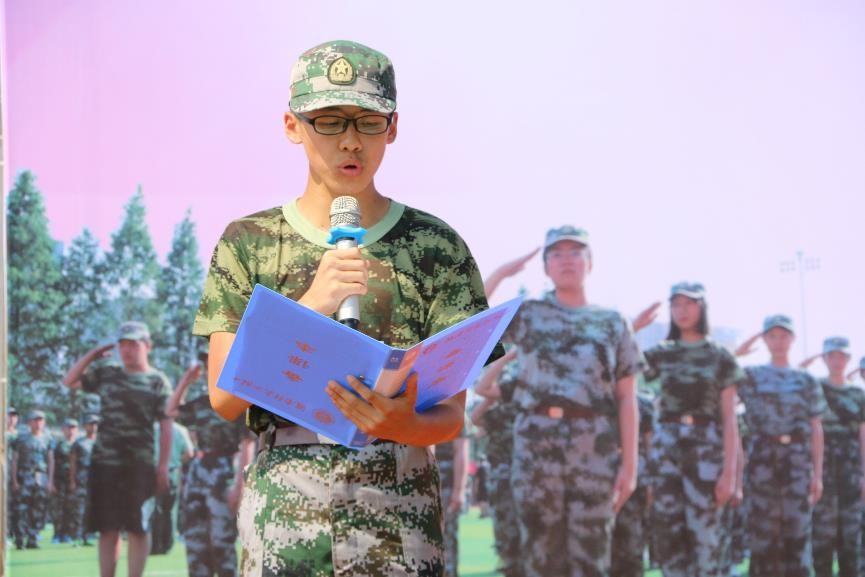 接着,来自1605班的彭欣霖代表全体高一新生发言,向老师和教官表达了自己的感谢,也向高一新生们发出了共同努力的号召。