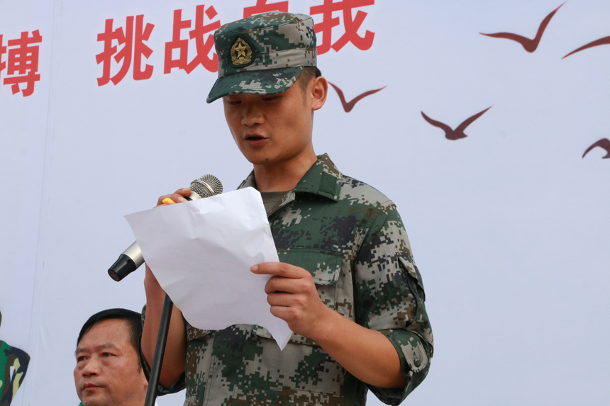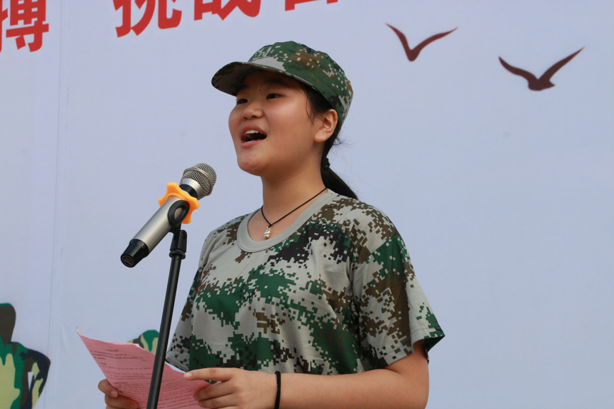 我校新生代表也代表高一全体同学做出了庄严承诺,保证一切行动听指挥,严格要求自己,严格接受训练,战胜一切困难,在军训中互帮互助,携手做最好的自己!