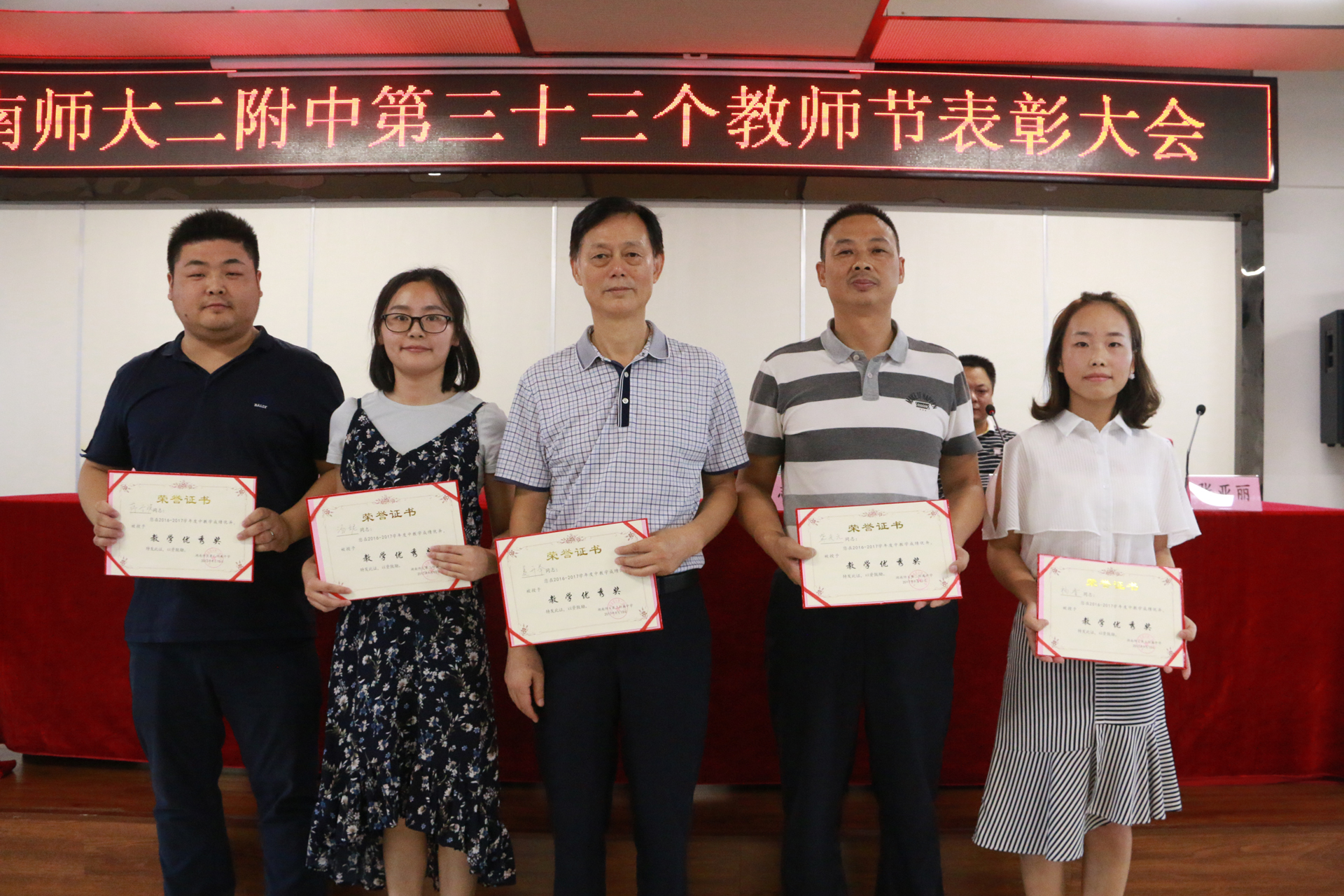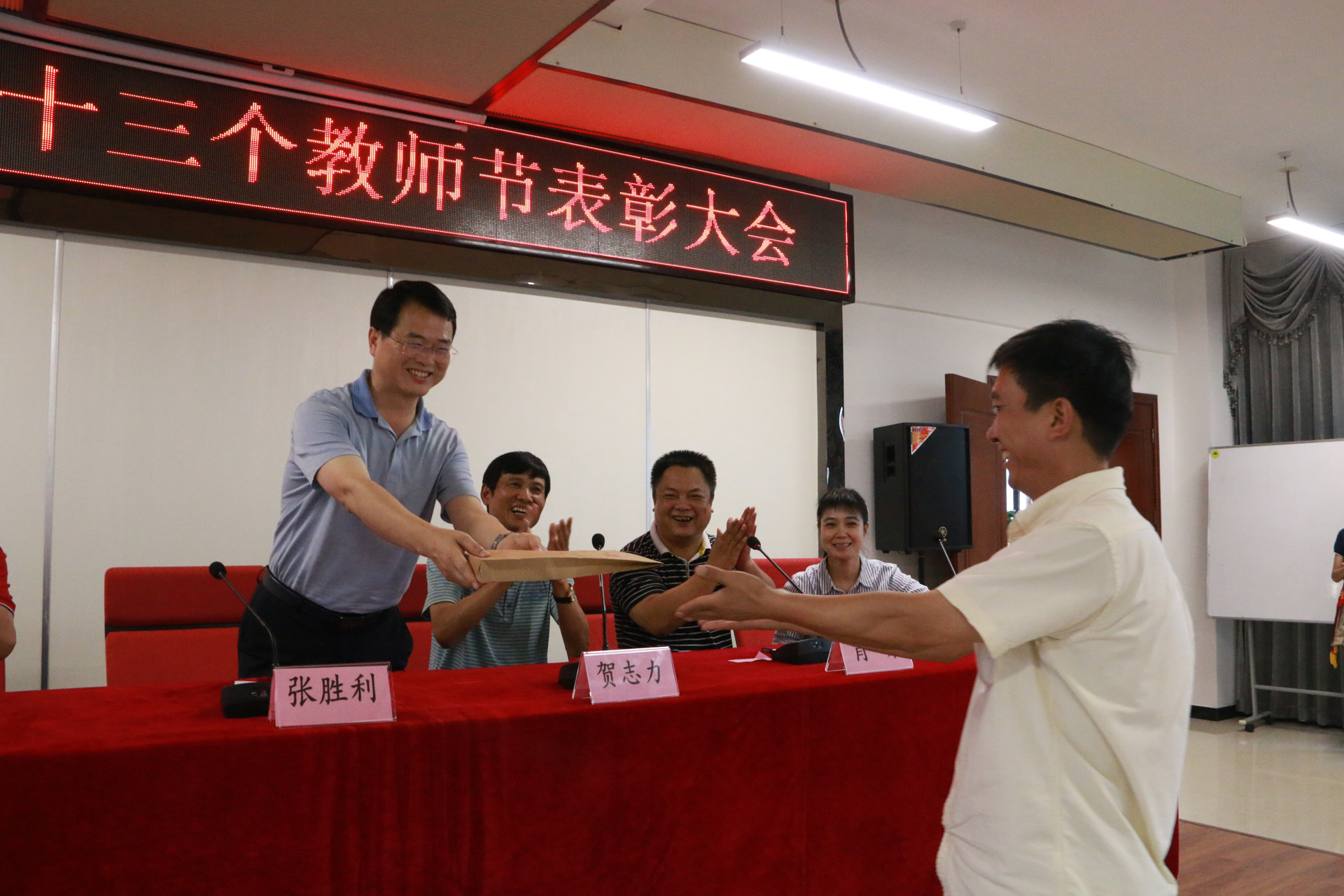 表彰大会在庄严的国歌声中拉开帷幕,张胜利校长首先作节日致辞,他表达了对全校教职工辛勤创业的感谢,肯定了教职工们在去年一年的全心付出,同时鼓励全体员工再接再厉,为二附中的长远发展添砖加瓦。随后我校党支部书记、副校长肖荣老师宣读表彰决定,向被表彰的老师表示诚挚的祝贺,希望全校教师以他们为榜样,为推进我校的跨越式发展作出更大贡献。会议最后,董事长贺志力先生向全体教师表示了节日的祝福和问候,承诺将继续为老师安心在二附中工作保驾护航,做好服务工作,并期望教师们狠抓教学质量,激励广大教职工爱岗敬业,全力打造湖南师大二附中这一品牌!
