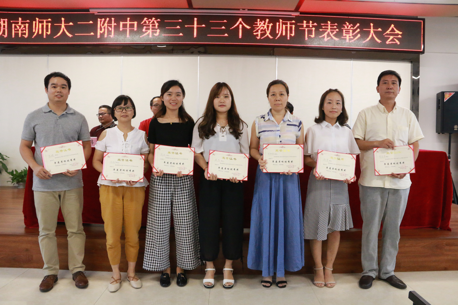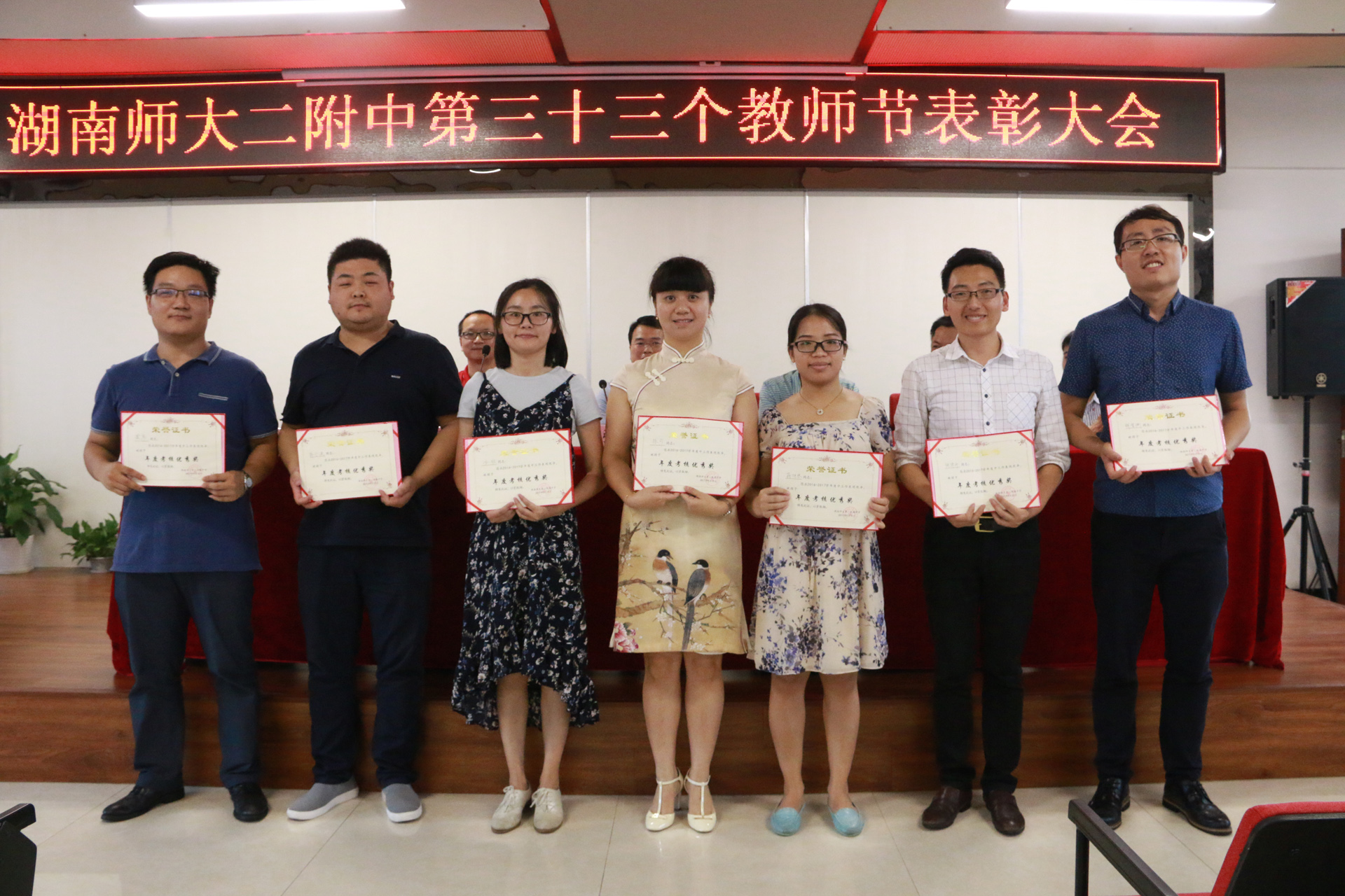 9月8日下午4点45分,我校在仁爱楼六楼举行2016—2017学年度优秀教职工表彰大会。出席此次表彰大会的嘉宾和领导有: 湖南师大二附中董事长贺志力先生,湖南师大二附中校长张胜利老师,湖南师大二附中校监肖建新老师,湖南师大二附中党支部书记、副校长肖荣老师,湖南师大二附中副校长易鹏老师,湖南师大二附中财务总监张亚丽女士。大会由副校长吴元其主持。