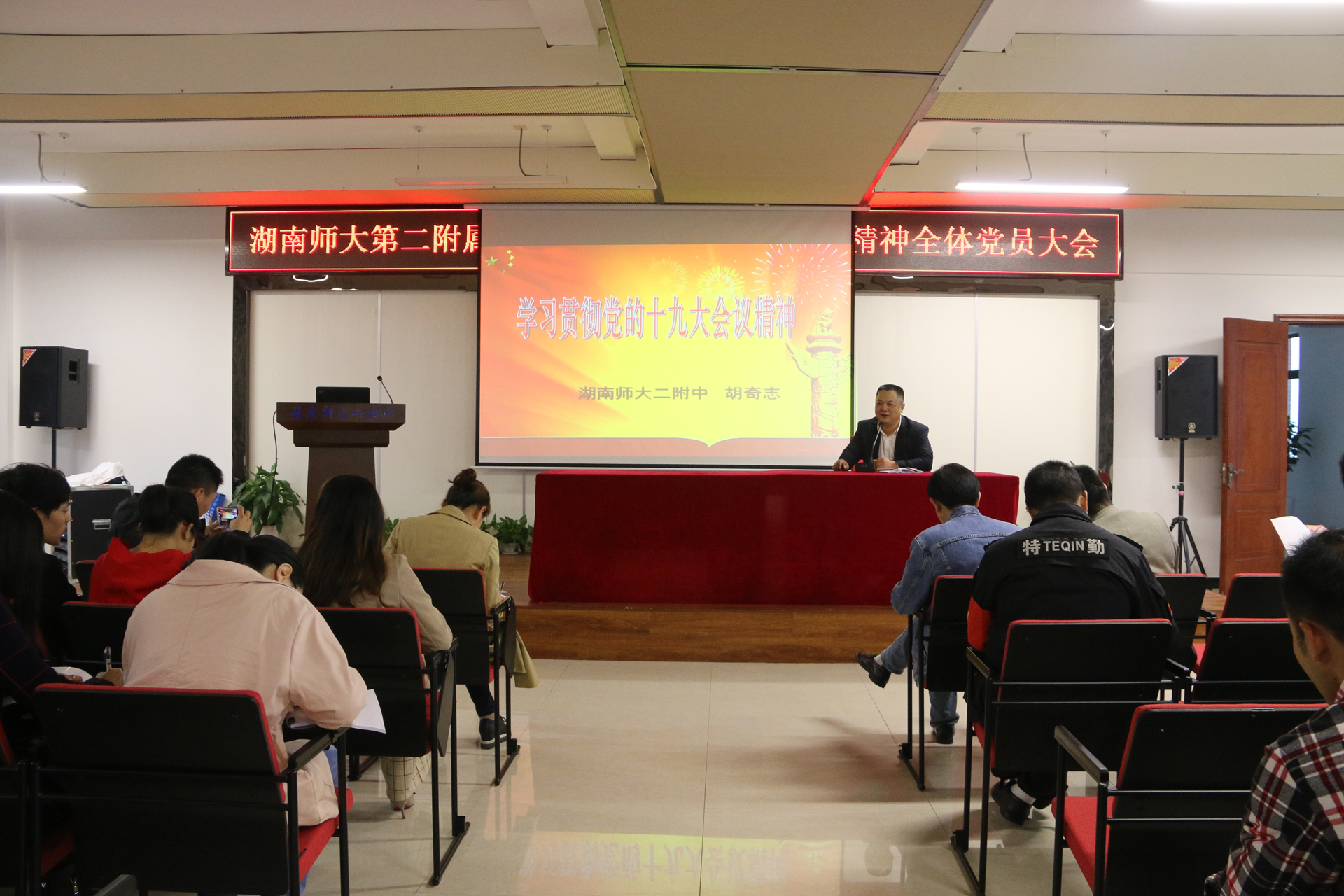 11月10日下午,我校在仁爱楼六楼大会议室召开“湖南师大二附中学习贯彻党的十九大精神专题会议”,全体党员参加,肖荣书记主持。