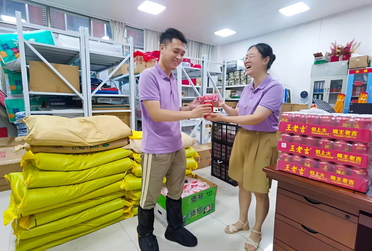 工会精选了多款清凉解暑、滋养身心的佳品,为确保慰问活动顺利进行,特别安排了便捷的领取方式,避免打扰到老师们紧张的工作。各部门代表纷纷前往保管室,与工会福利委员宋微老师携手,共同领取这份来自工会的温馨祝福。对于不便亲自领取的教职工,工会还贴心地提供了专人送达服务,确保每一份关怀都能及时送达。