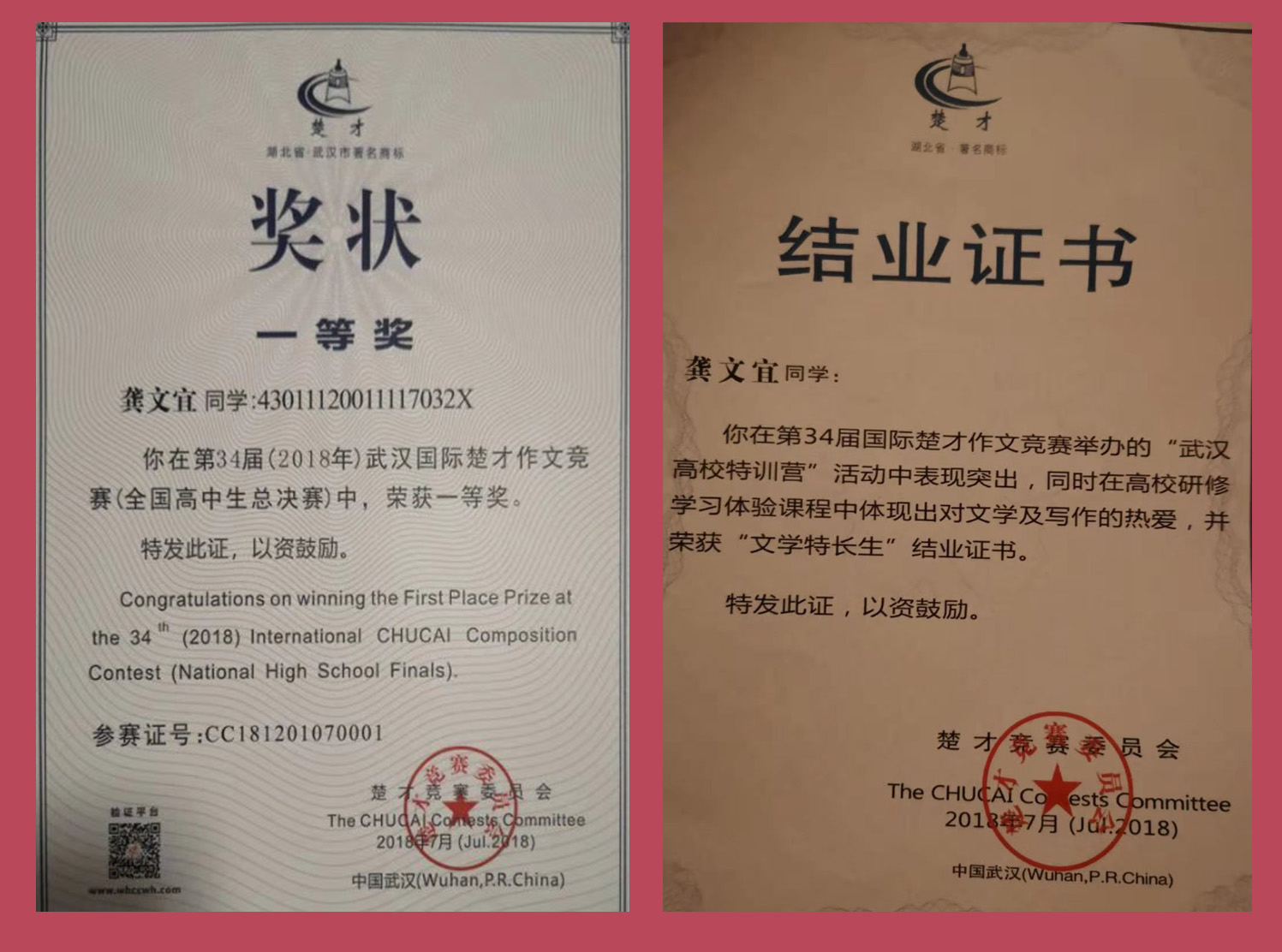 【喜报】我校俩学生在全国作文大赛中摘金夺银
