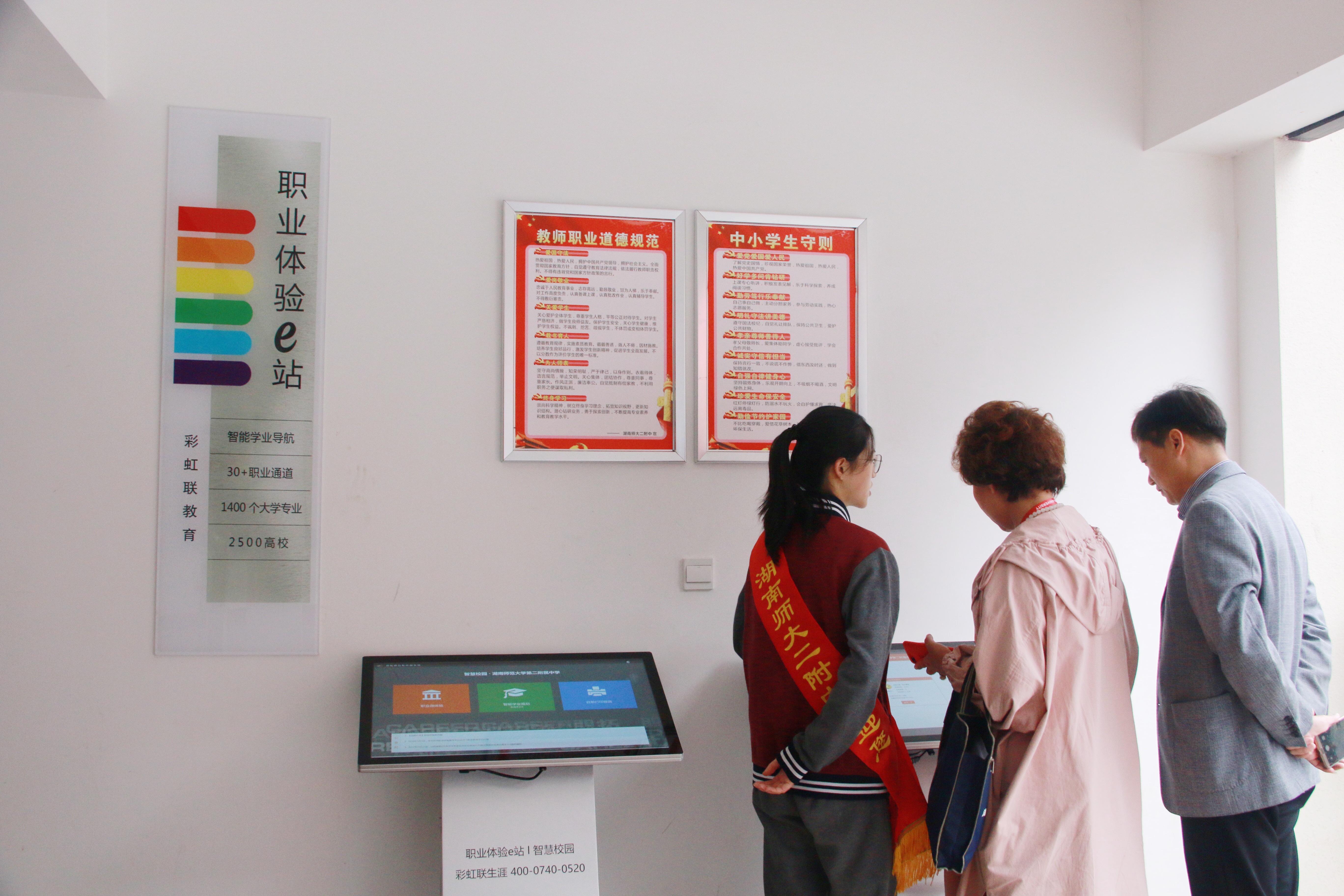 志愿者向与会嘉宾介绍我校职业体验e站