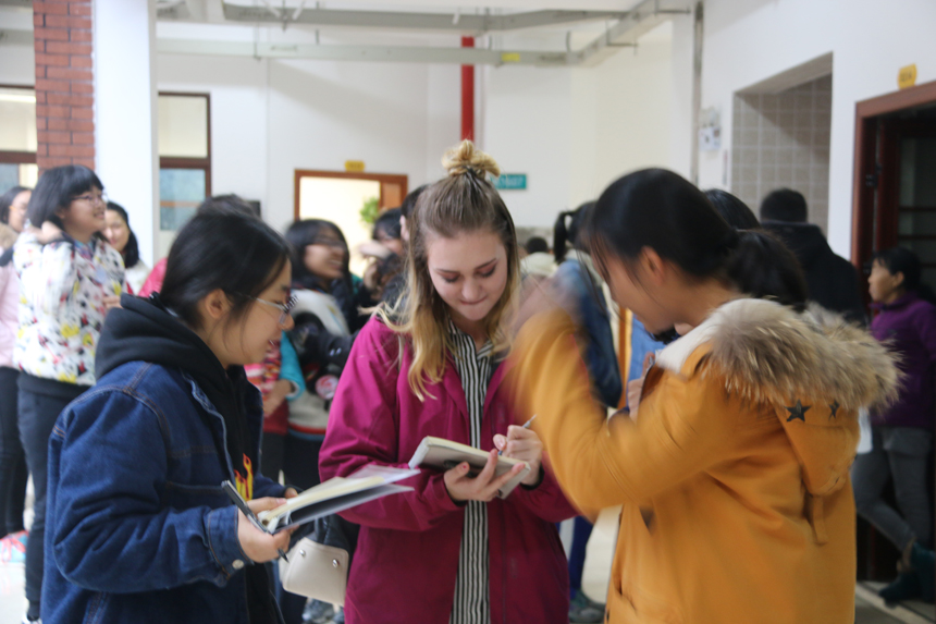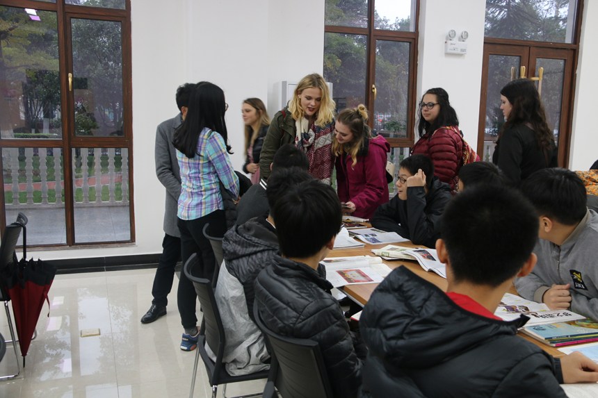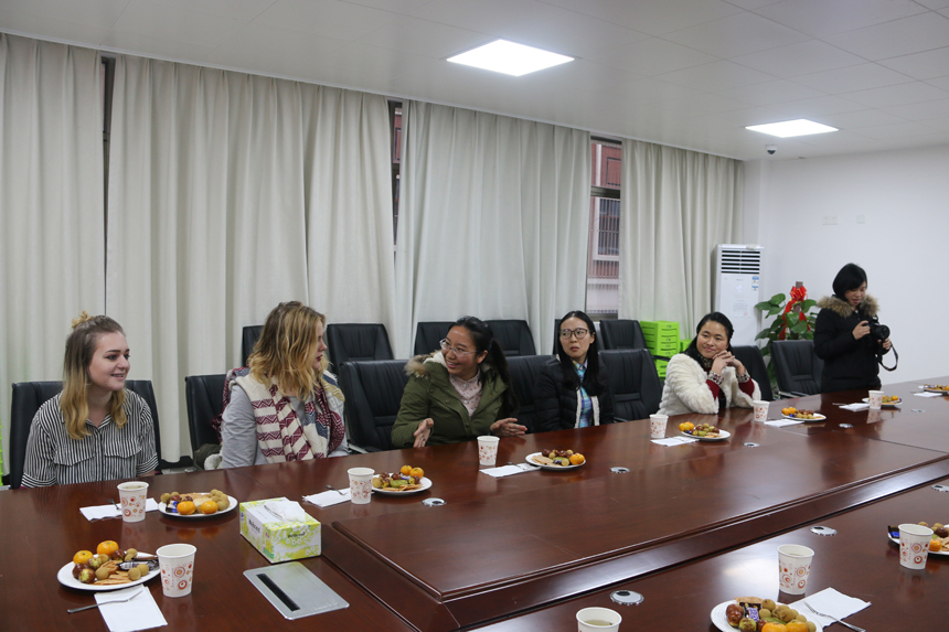 11月9日,在长沙邦德堤亚纳湾国际学校任教的7位美籍教师来我校参观交流。