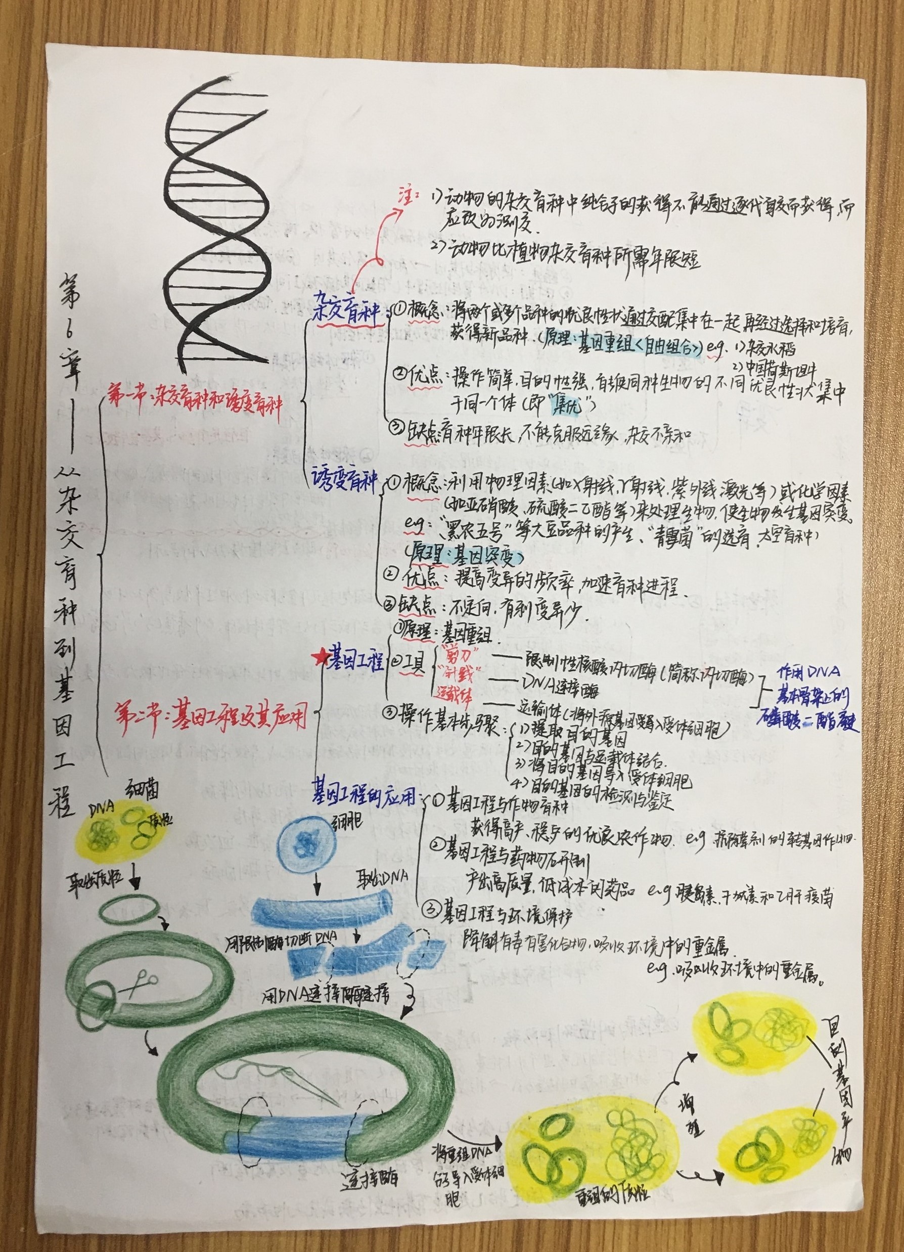 此次大赛要求学生从遗传的细胞学基础、遗传的分子基础、可遗传变异三个主题中,任选一个制作思维导图,思维导图既要有主题的核心概念、知识框架,还要有相关的知识点细节。学生的参赛作品风格各异,有靠工整取胜的纯文字类导图,有靠色彩取胜的图画类导图。不管是哪一种类型的思维导图,都展示了学生们积极、认真、严肃的态度,以及藏在学生脑袋里面的奇思妙想。