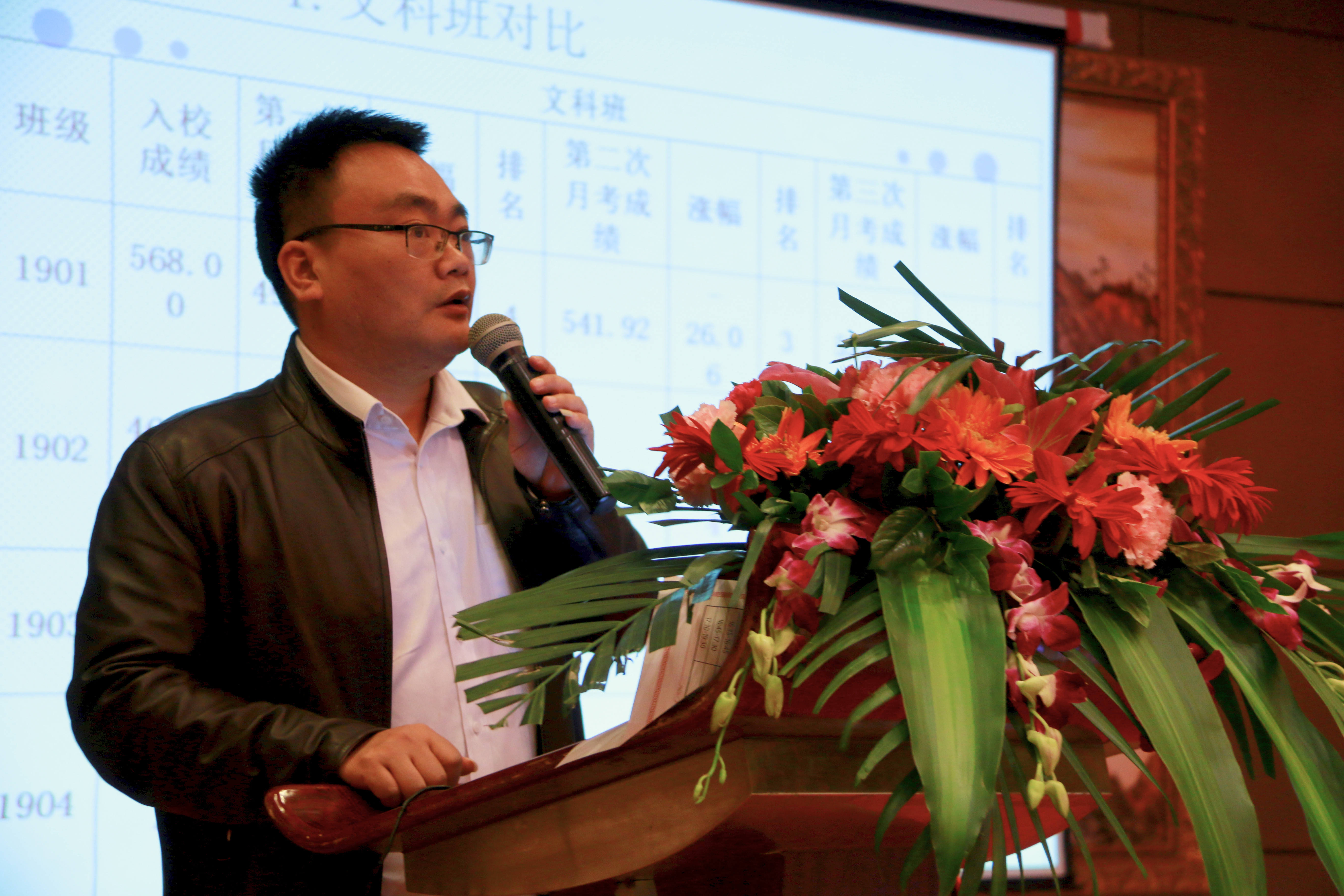 培训部主管皮海良、副主管谢伟发和高三年级主管张伟平分别作教育教学工作讲评与质量分析。皮海良总结了级部班主任管理工作的闪光点,对科任老师的辛劳付出表示衷心的感谢,指出了目前存在的问题和后期努力方向。谢伟发和张伟平对培训部和高三年级做了全面细致的成绩分析,从各班各学科的平均分、优秀率、进步幅度等方面与前阶段做比较,从优生群体的稳定情况与联考学校做比较,从一串串醒目的数字中找问题,定目标,做到了心中有数,以便于对接下来的教学工作及时改进调整。