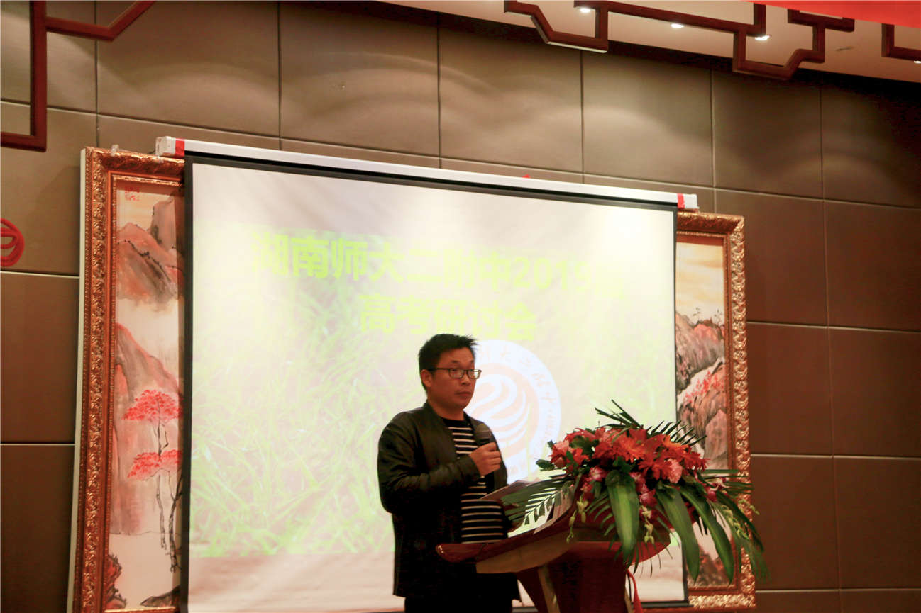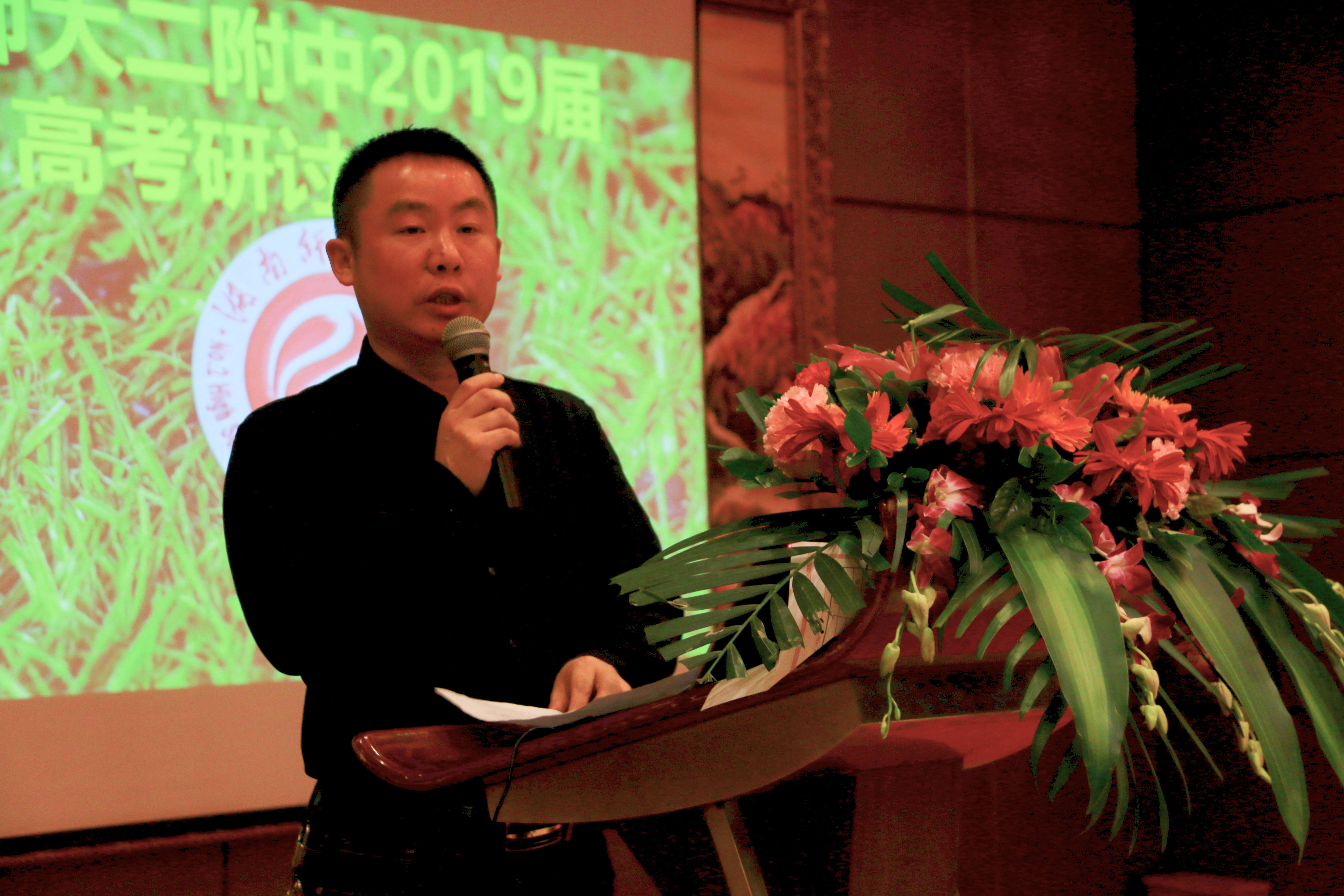 校长张胜利在讲话中指出,提高教育教学技术含量是科学备战高考的关键,高效备考的同时要做到重细节,抓落实,勤反思,重推广。对于如何开好本次研讨会,张校长提出了四个关键词:一是借鉴,他希望上届高三教师踊跃发言,积极传授成功经验。二是求真,全体与会教师要认真分析会议资料,比对数据,在数据中发现问题,反思不足。三是严谨,按照会议方案严谨务实地开展好本次会议,并形成会议成果,指导后续工作。四是尽责,行政干部在研讨过程中要起到示范、引路及服务作用,在互动交流中提升,在反思提炼中发展。