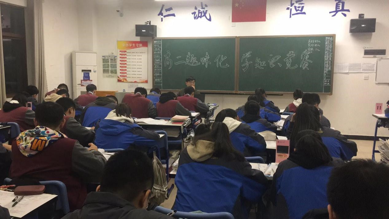 本次竞赛面向高二全体同学,采取闭卷考试的方式进行,试卷集知识性、趣味性于一体,打破以往纯知识性竞赛的单调,使同学们在快乐中获取知识。在当堂晚自习值班老师的组织下,高二年级秩序井然地进行“趣味化学知识竞赛”。考试过程中,全场肃然,每一位学生都专心致志,认真作答。