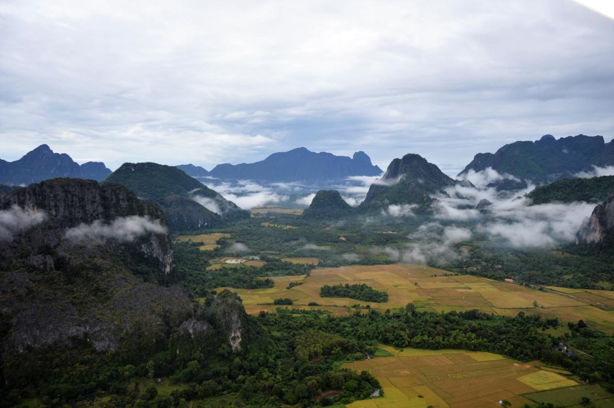 南松河边湿润的气候,起伏的喀斯特山丘间点缀着朵朵白云,