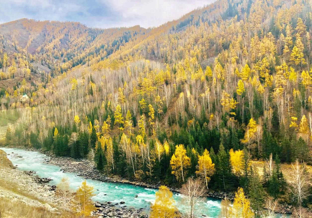 图为新疆喀纳斯湖附近一处景点“月亮湾”