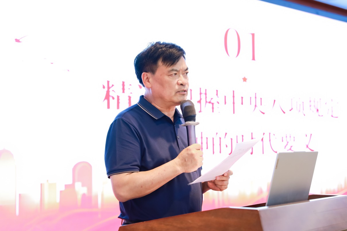 党委书记陈迪勋带领全体教职工深入学习党的八项规定精神,提升教师的政治责任感和使命感,促进师德师风建设。同时,他通报了本学期来的安全工作亮点,强调安全稳定是学校发展的基石,要求全体教职工提高意识、责任上肩,将安全意识贯穿于教育教学的每个环节。