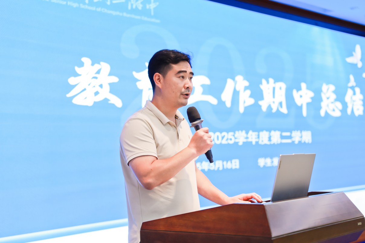 学生发展处主任周湘做德育工作半期小结。他从德育活动、常规考核、重点工作推进等方面回顾了半期德育工作,并就后期德育工作重点进行部署。