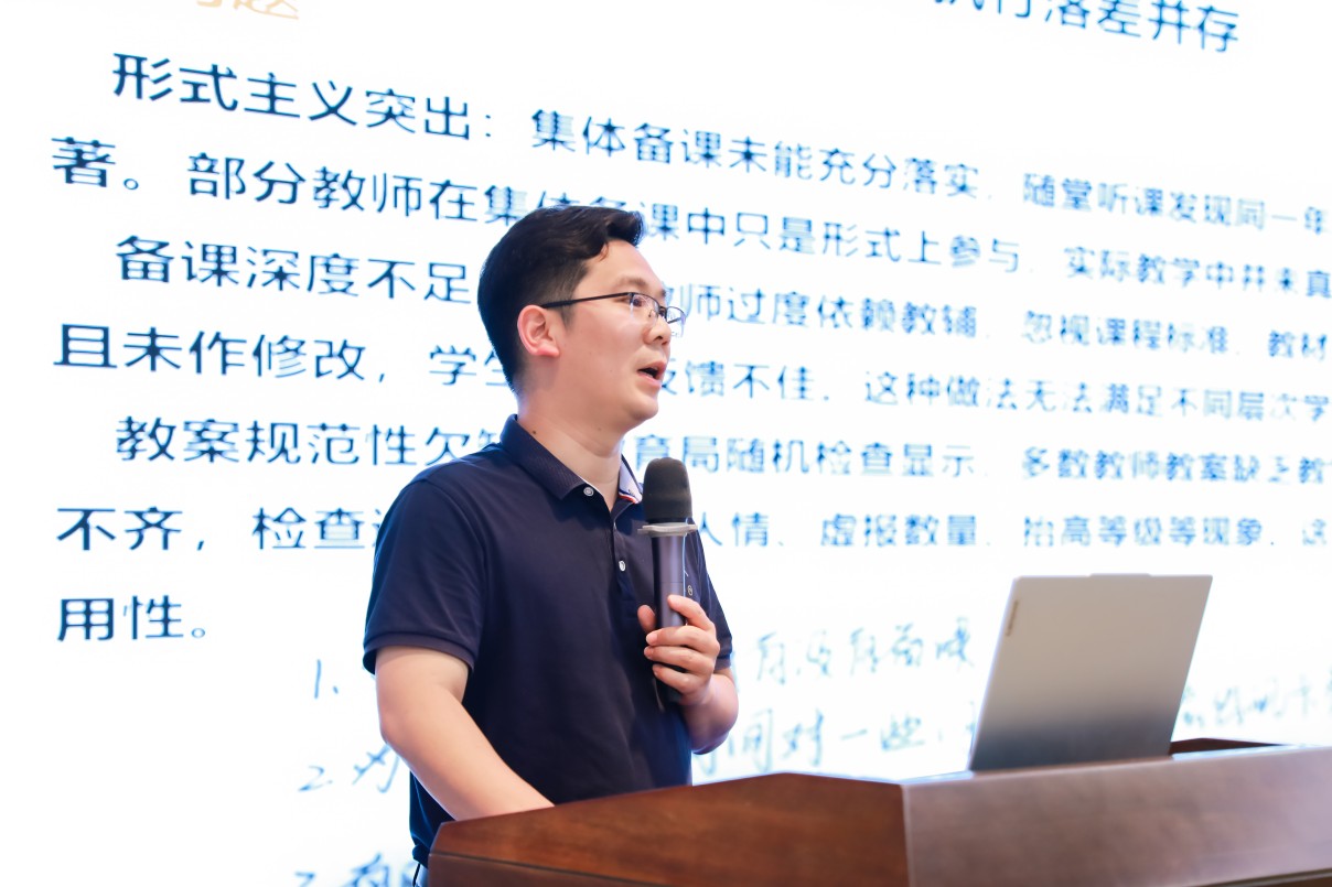 校长助理、课程教学处主任王成围绕备课、教学、作业、考试、辅导等方面总结上半期教学工作,通过详实的数据及实例分析了高考招生、学籍管理等工作的开展情况。同时以备战“两考”、规范学生答题习惯为目标,详细部署后阶段工作。