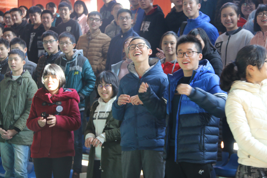活动亮点是英语备课组组长张伟平老师组织的英语“快乐传真”环节。在外教老师和英语组姜波老师、蔡佳慧老师、夏芳艳老师的带领下,五十余名参与学生各自挥发特长,将对于英语词义的阐释生动地展示出来。其中1611班余意、1603班张世涛、1602班黄天问1607班夏闻一等同学精彩的表演,博得全场掌声和欢呼。