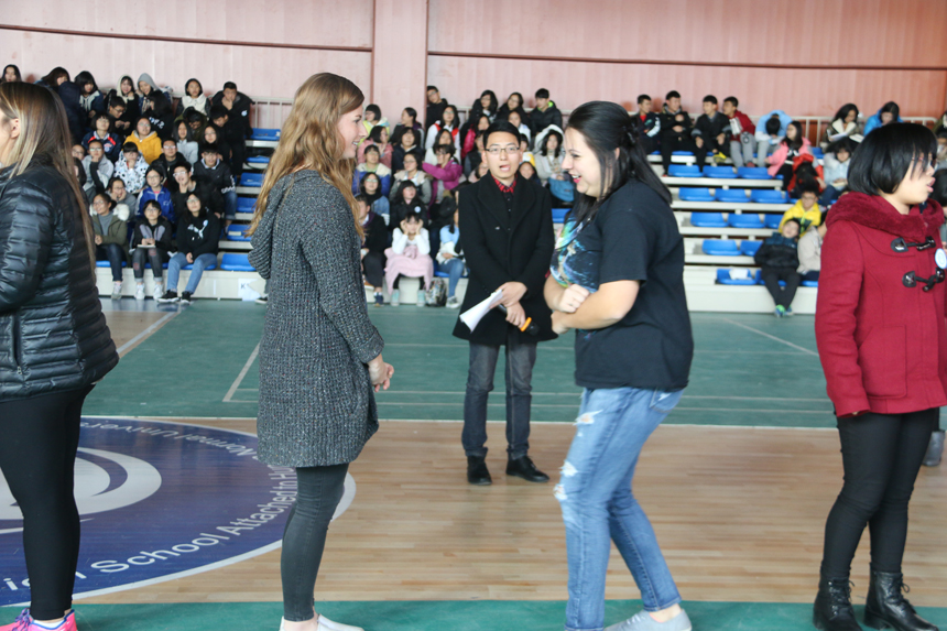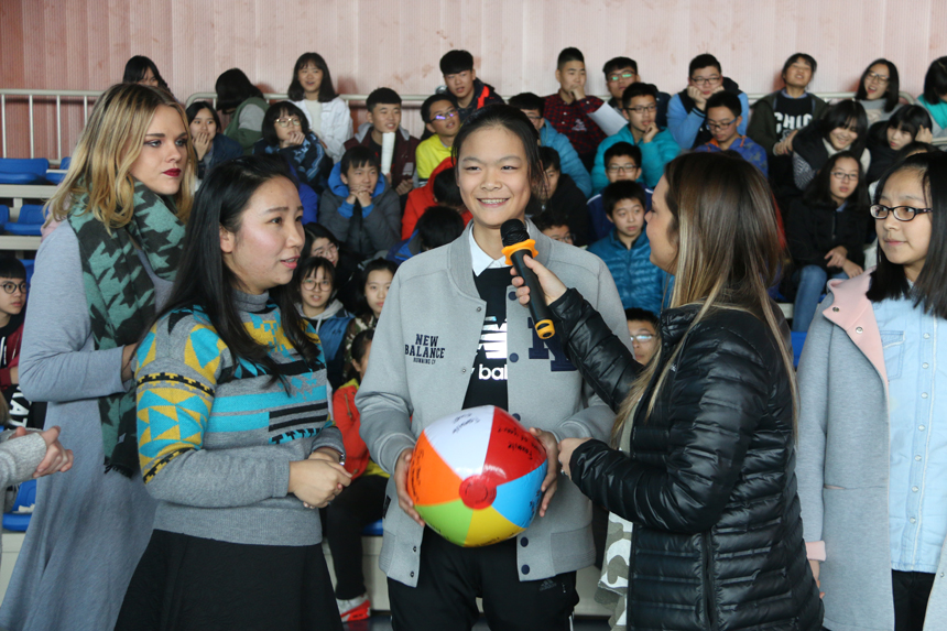 11月26日在我校天健馆,来自长沙邦德国际学校的六位美籍外教老师和我校学生开展了活泼有趣、别开生面的文化交流活动。
