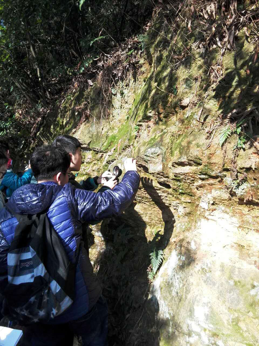 上午9点左右,我们一行人抵达了岳麓山清风峡,开始了对岳麓山的地质考察。在三位地理老师的示范与悉心指导下,三个小组的成员分别测量了清风峡两侧的出露岩层,大致推测了清风峡的地质构造。而后,小组成员深入清风泉进行了进一步的考察。基本对于清风峡地区的背斜成谷有了一定的认识。