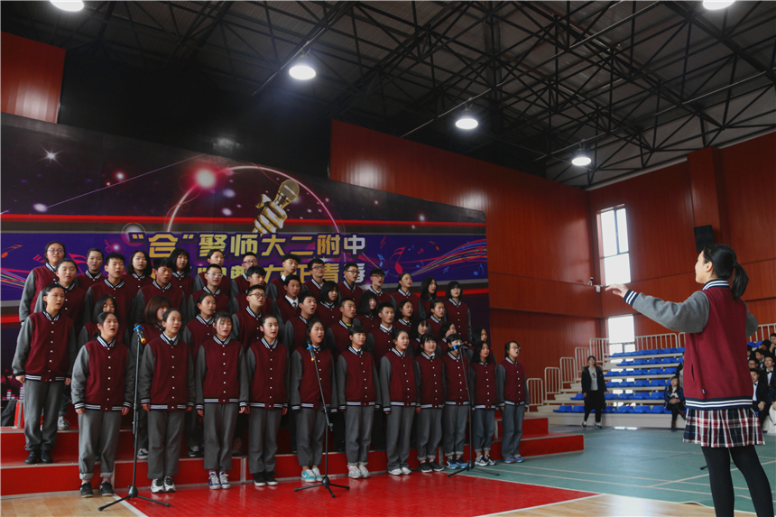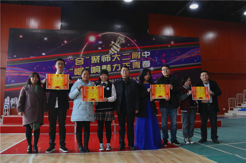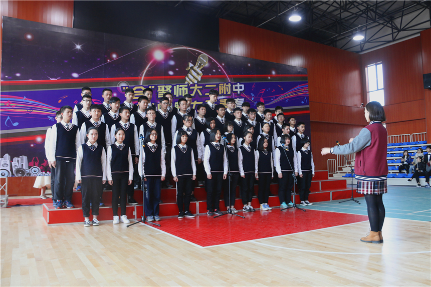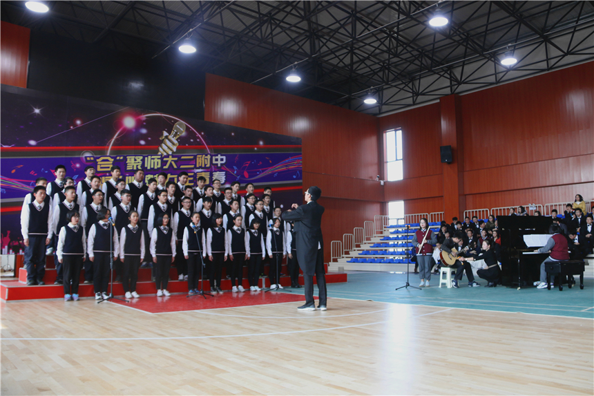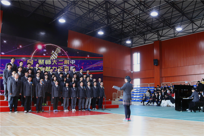 “合”聚师大二附中,“唱”响魅力正青春。12月16日下午,天健馆内歌声嘹亮,激情飞扬,第一届校园合唱比赛隆重举行。担任本次合唱比赛评委的领导、老师有校长张胜利、校长助理余柏青、财务总监张亚丽、陈可、彭建、胡梦溪、彭召花等。高一年级全体老师和学生参加了此次比赛。