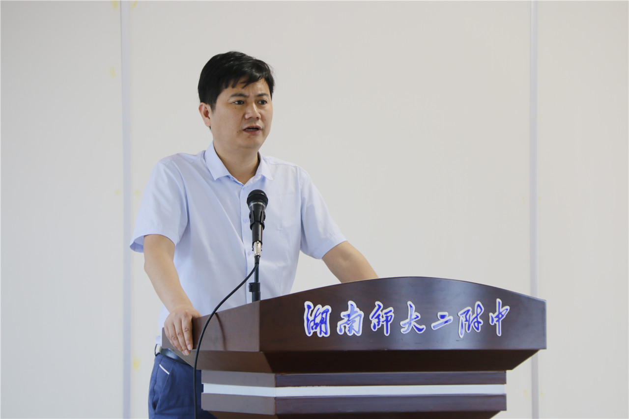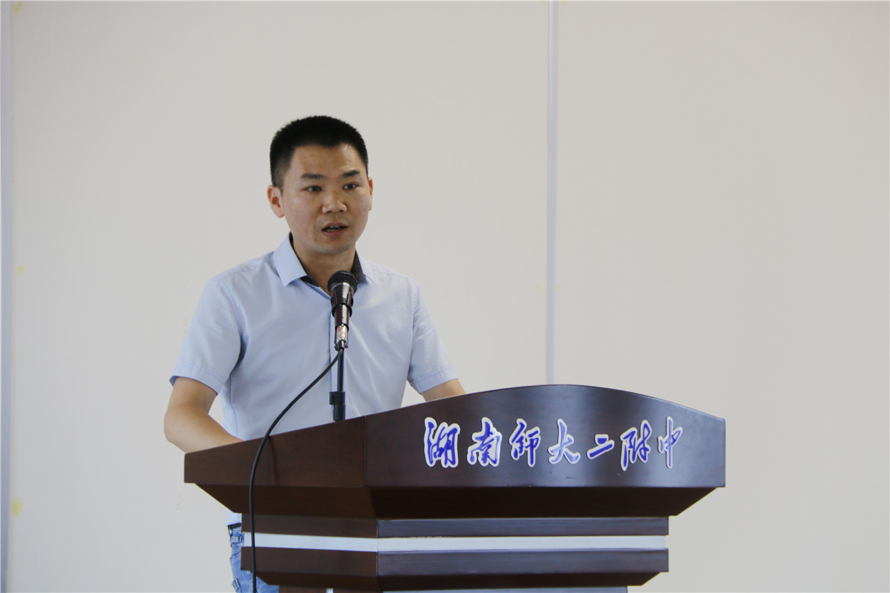 会议第一个议程由高二年级组长易戆如进行工作部署。易组长用航天精神“特别能吃苦,特别能战斗,特别能攻关,特别能奉献”肯定了近段时间以来高二年级各位老师的工作,同时对送考工作方案进行了解读,要求各位老师用“严肃、严格、严谨”的态度,对待此次送考工作。