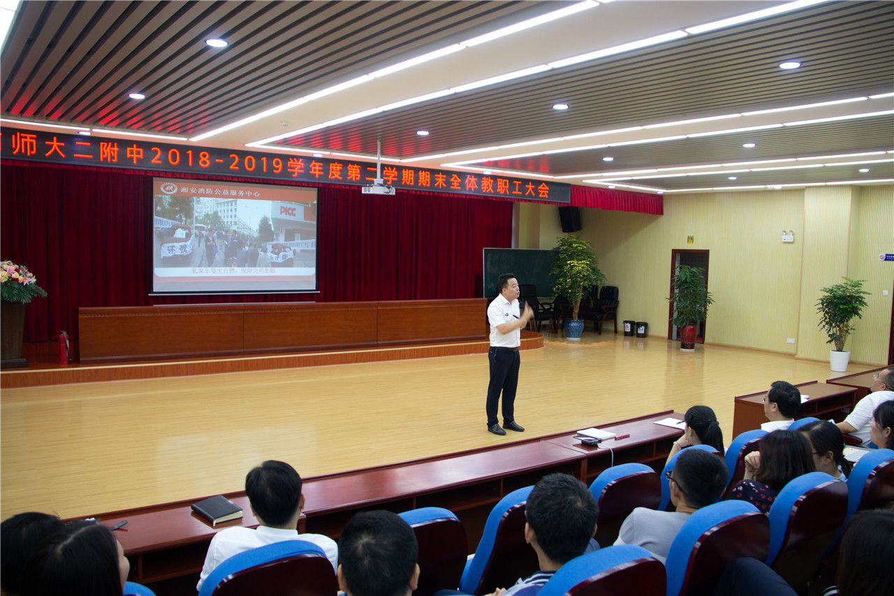 会议最后,湘安消防公益服务中心王松清教官到学校主讲消防安全知识。王教官结合各类火灾真实的现场图片视频,快速而不乏生动的讲述,深深吸引了在场的每位老师。大家纷纷表示,这样的安全讲座十分有意义,从中学会了许多消防知识,提高了消防安全意识,不光自己要注意,还要回去好好给家人都“上一课”,过一个平安的假期。