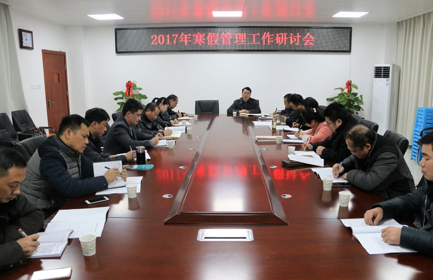 1月15日-16日,我校在诚正楼二楼会议室召开2017年寒假管理工作研讨会,校领导、中层干部、学术委员会主任、督导委员会主任、年级组长共15人参加了会议。会议主要内容是反思与研讨如何增强行政能力,优化管理措施,提高教育教学质量。会议由校长张胜利主持。