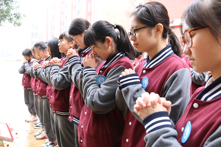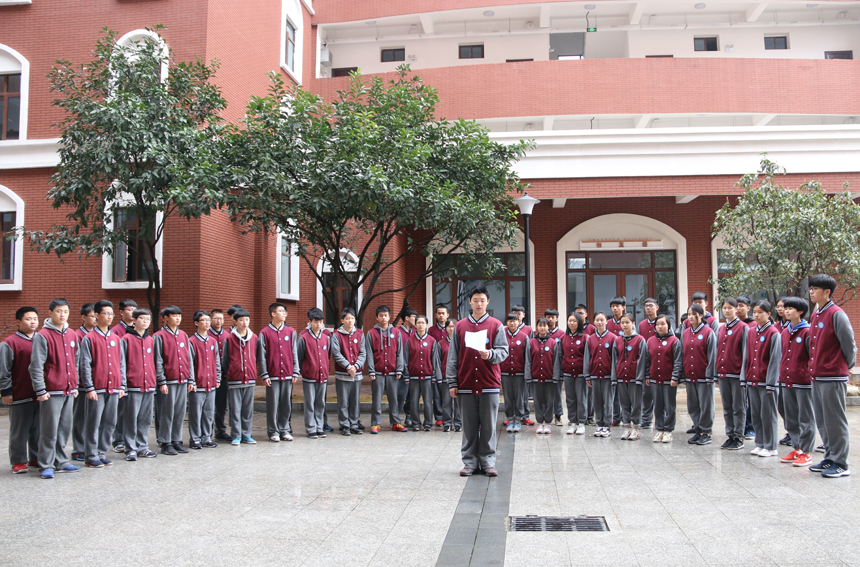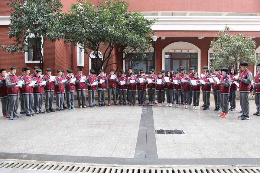 1605班学生整齐划一地站在银杏树前,用自己稚嫩的声音喊出了自己青春的誓言:“我们一定铭记师恩,踏实肯干,认真学习,积极向上!用行动回报父母,用实干回报学校,用真诚回报社会,成为社会的栋梁,民族的脊梁!”