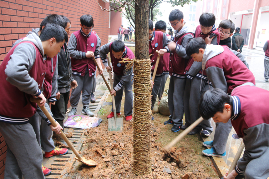 校长张胜利高度赞扬了1605班家长为此次活动的倾情付出,并对1605班学生提出了殷切的希望:“同学们,今天你们亲手种下了两棵树——一棵希望之树,一棵成长之树。十年树木,百年树人,在这十年中,这两棵树将沐风栉雨、茁壮成长;在这十年中,你们也将博学洽闻,与日俱进。请同学们与你今天种下的树心中对白:十年中我将与你一同成长,十年后我回母校来看你长成了什么样的树,也请你看看我长成了什么样的人。老师祝福你们种下的树,更祝福今天种树的人!”