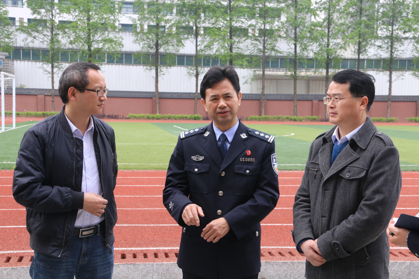 4月12日上午,我校法制副校长、长沙市高新区公安分局黄英富政委率丁钢铸副局长、王学武大队长、周群超、熊小林警官一行五人莅临我校指导安全工作,我校校长张胜利、校监肖建新、学生处副主任任明陪同。