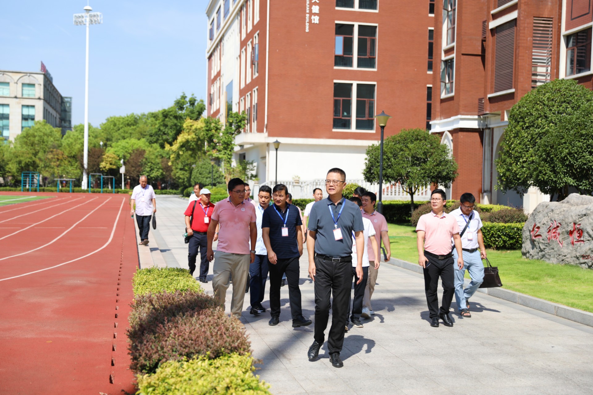 在我校主任李鹏、主任夏友才和主任彭键等领导的陪同下,来宾参观了我校校园文化建设、招生办宣传大厅、教学楼、携手成长银行和学生宿舍、操场等校园场所,两校领导亲切交流、友好互动。