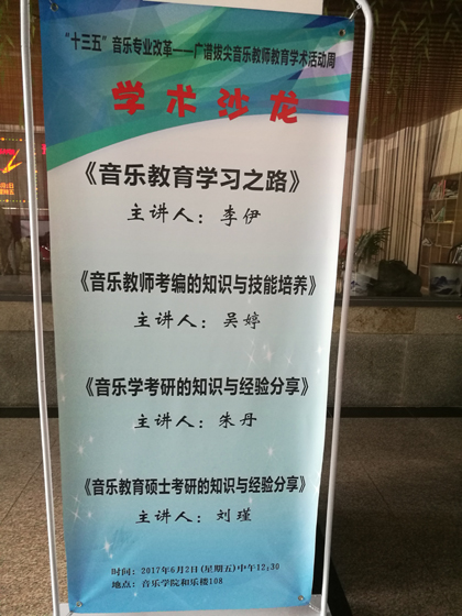5月26日至6月9日,湖南师大音乐学院举办“十三五”音乐学专业改革——广谱拔尖音乐教师教育学术活动。参与此活动的有著名相声表演艺术家兼节目主持人、知名校友大兵老师,中央音乐学院副院长、博士生导师周海宏教授,国家级教学名师、民族音乐学家、博士生导师王耀华教授,哈尔滨音乐学院二级教授、博士生导师郁正民教授等知名专家。
