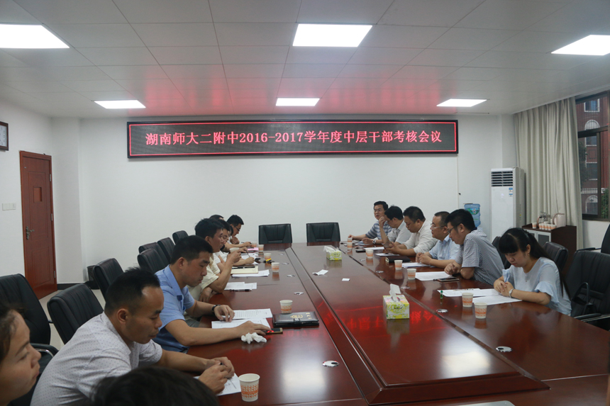 6月22日,我校2016—2017学年度中层干部考核工作在诚正楼会议室顺利开展,余柏青校长助理主持会议。