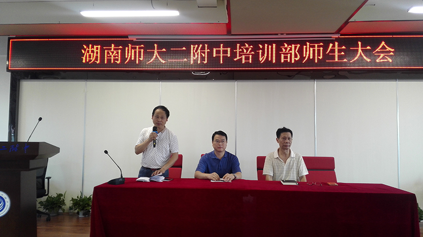 7月26日上午,我校培训部在仁爱楼六楼多功能厅召开了2018届高三第一次全体师生会议,校长张胜利,校长助理吴元其及培训部全体师生参加了会议,会议由培训部主任王龙主持。