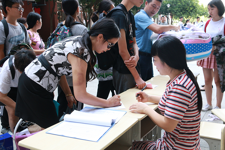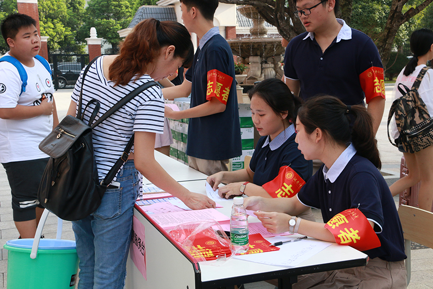 今年我校迎新工作实行“一站式”服务,并提前点对点发布入学须知等信息,进一步简化新生报到流程,推出了多项人性化举措。准备了《新生报到流程单》、《新生入学须知》、《寝室分布平面图》等资料,保证了新生很快熟悉学校的环境和报到流程;在校门口、教学楼以及宿舍楼,校团委设置了志愿服务点,为新生及家长提供咨询、行李寄存等服务;提供免费矿泉水和休息座椅;“班级报到处”、“床上用品领取处”、“宿舍楼区”等指引标志醒目有序;学校食堂专门为新生增设窗口,确保新生及家长的餐饮供应。