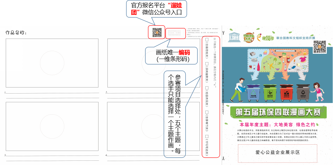 4、参赛选手必须拥有健康正确的社会价值观,遵守国家相关法律法规,监护人对其作品及言论负有监督和法律责任;参赛选手具有一定环保公益意识,家长主动引导,自愿参加环保公益赛事,并自愿积极主动参与公益环保理念传播。