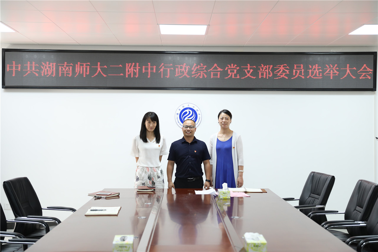 党总支委员李旭辉宣读了《中共长沙市湖南师大第二附属中学总支部委员会关于刘敏等同志的任命通知》和党总支关于同意行政综合支部委员会委员选举的批复。