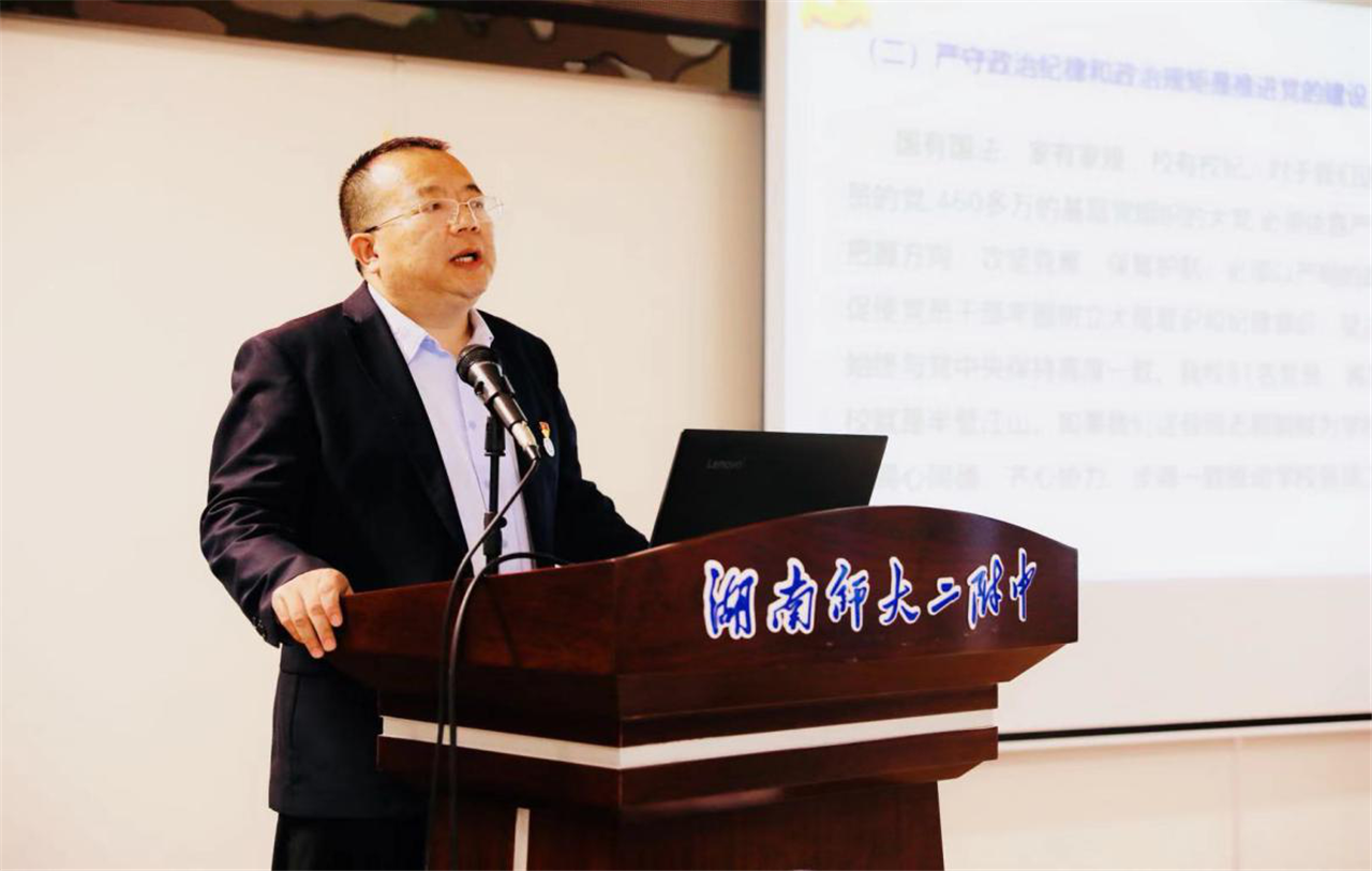 10月8日下午,湖南师大二附中党总支以“守纪律、讲规矩、清正廉洁作表率”为主题,开展“不忘初心、牢记使命”主题教育第二次集中学习研讨。全体党员参加学习,党总支书记余柏青主持会议。