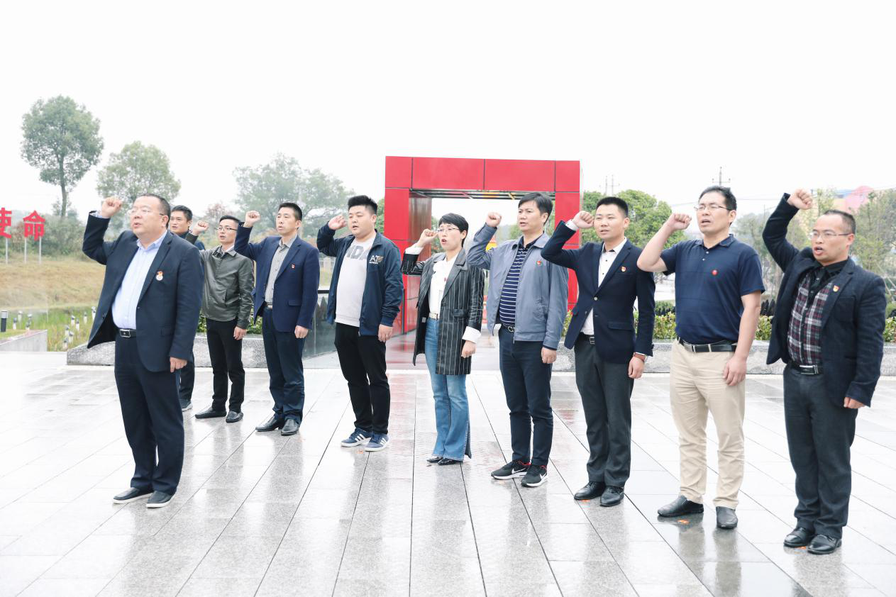 参观学习中,全体人员聆听了陈树湘“断肠明志”的英雄事迹和刘少奇实事求是蹲点调查的故事,并在党总支书记余柏青的带领下重温入党誓词,更坚定了初心。