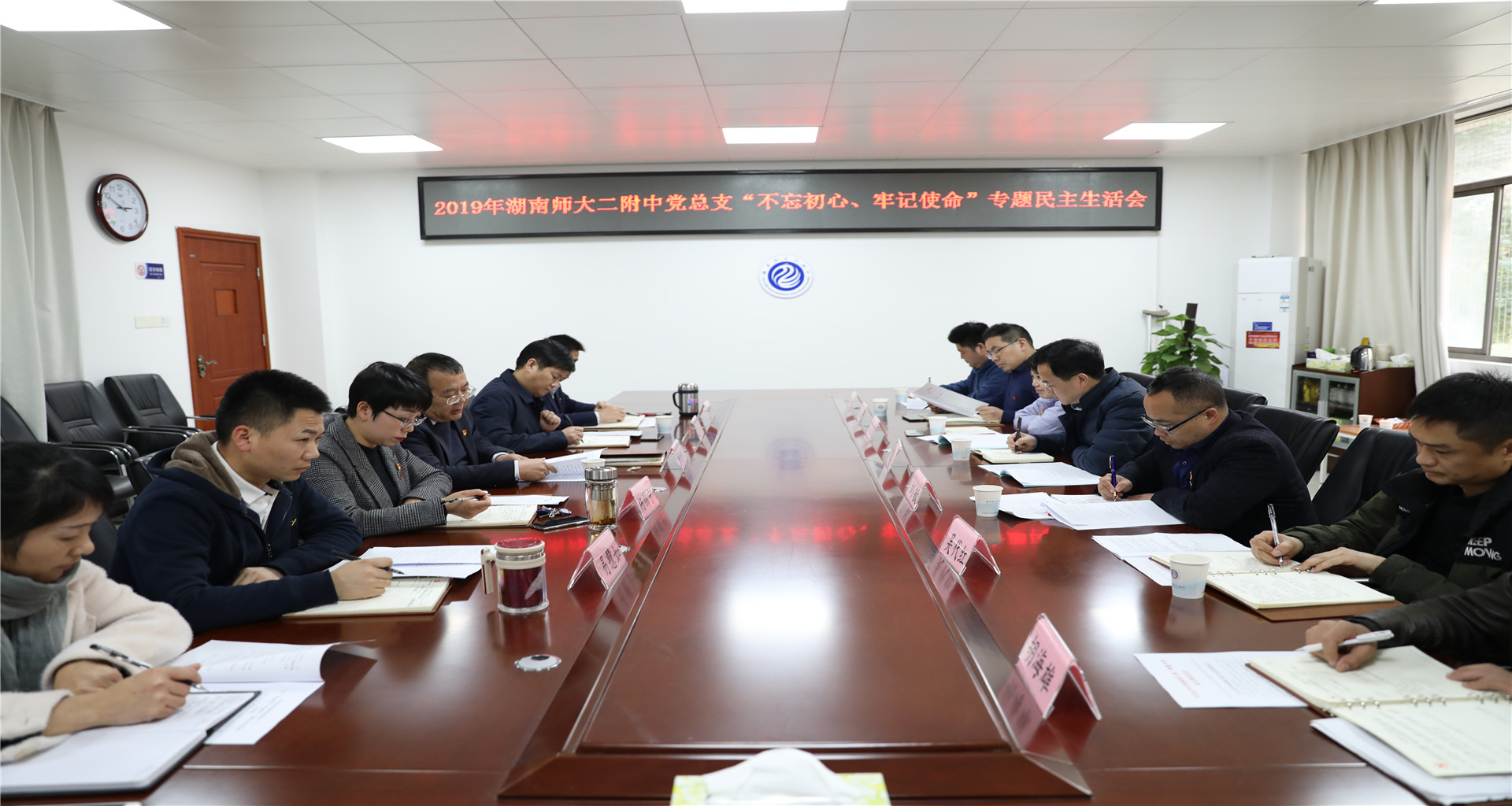 根据中共长沙市教育局委员会关于“不忘初心、牢记使命”专题民主生活会的工作提示,2019年12月12日下午,湖南师大二附中总支部委员会召开“不忘初心,牢记使命”专题民主生活会,我校总支委员和各支部书记参加会议,校长张胜利和校监张亚丽应邀出席,会议由党总支书记余柏青主持。