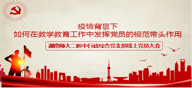 为了切实发挥基层党支部的战斗堡垒作用和党员的先锋模范作用,进一步做好疫情防控和教育教学工作,3月18日晚7点,湖南师大二附中行政综合党支部在线上召开了“疫情中党员如何发挥模范带头作用”的支部大会,会议由支部书记刘敏主持,党支部14名党员参加了此次会议。