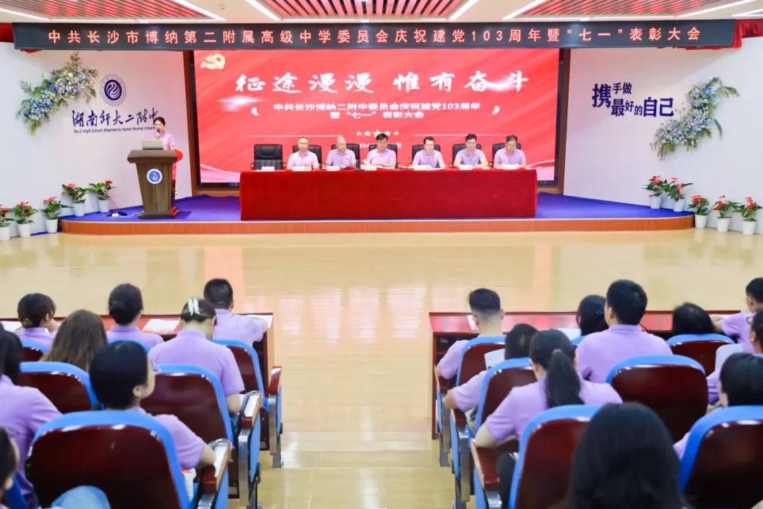 凝聚红色力量,赋能教育发展 ——博纳二附中庆祝建党104周年2025年7月1日下午5时,中共长沙市博纳第二附属高级中学委员会在格致楼八楼报告厅隆重举行庆祝建党104周年暨表彰大会。
