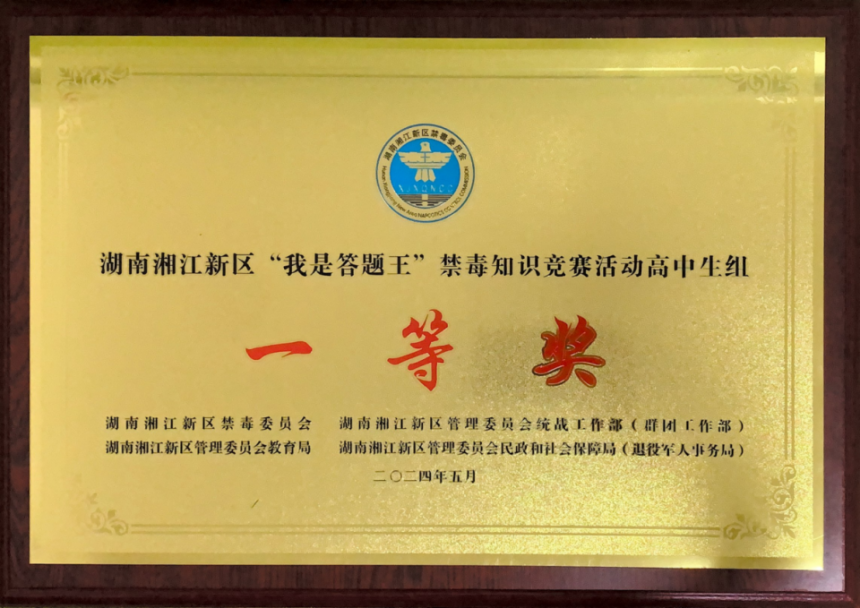 湖南湘江新区“我是答题王”禁毒知识竞赛高中生组一等奖