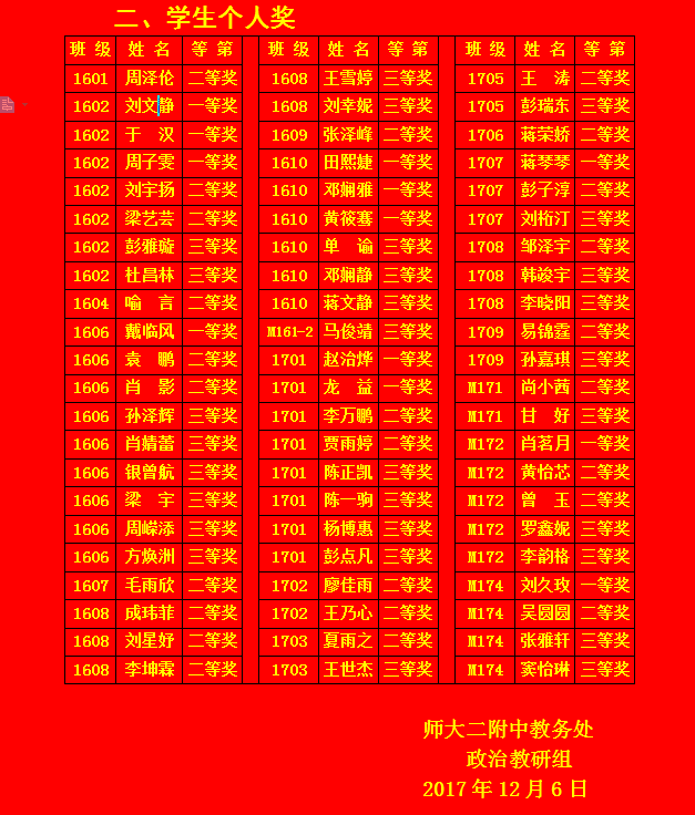 【光荣榜】湖南师大二附中2017—2018学年第一学期 高二物理竞赛