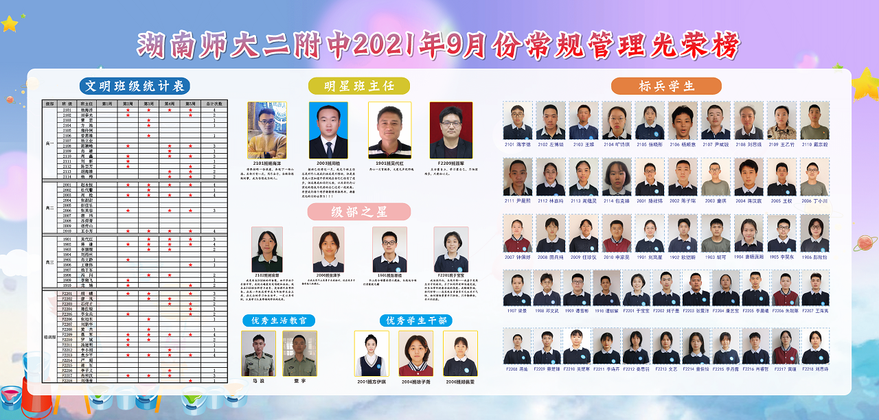 2021-2022学年度第一学期9月常规管理光荣榜