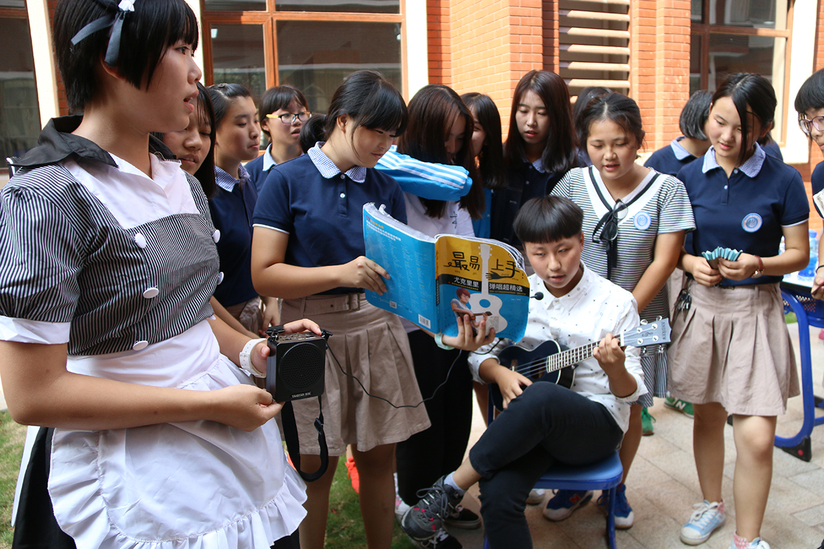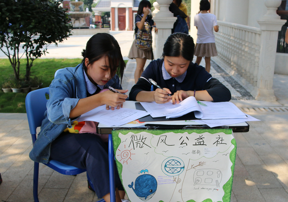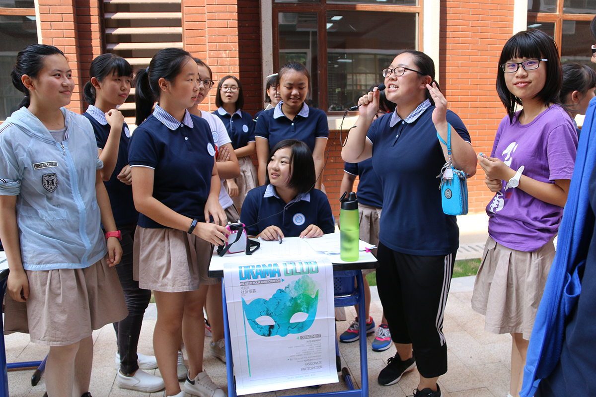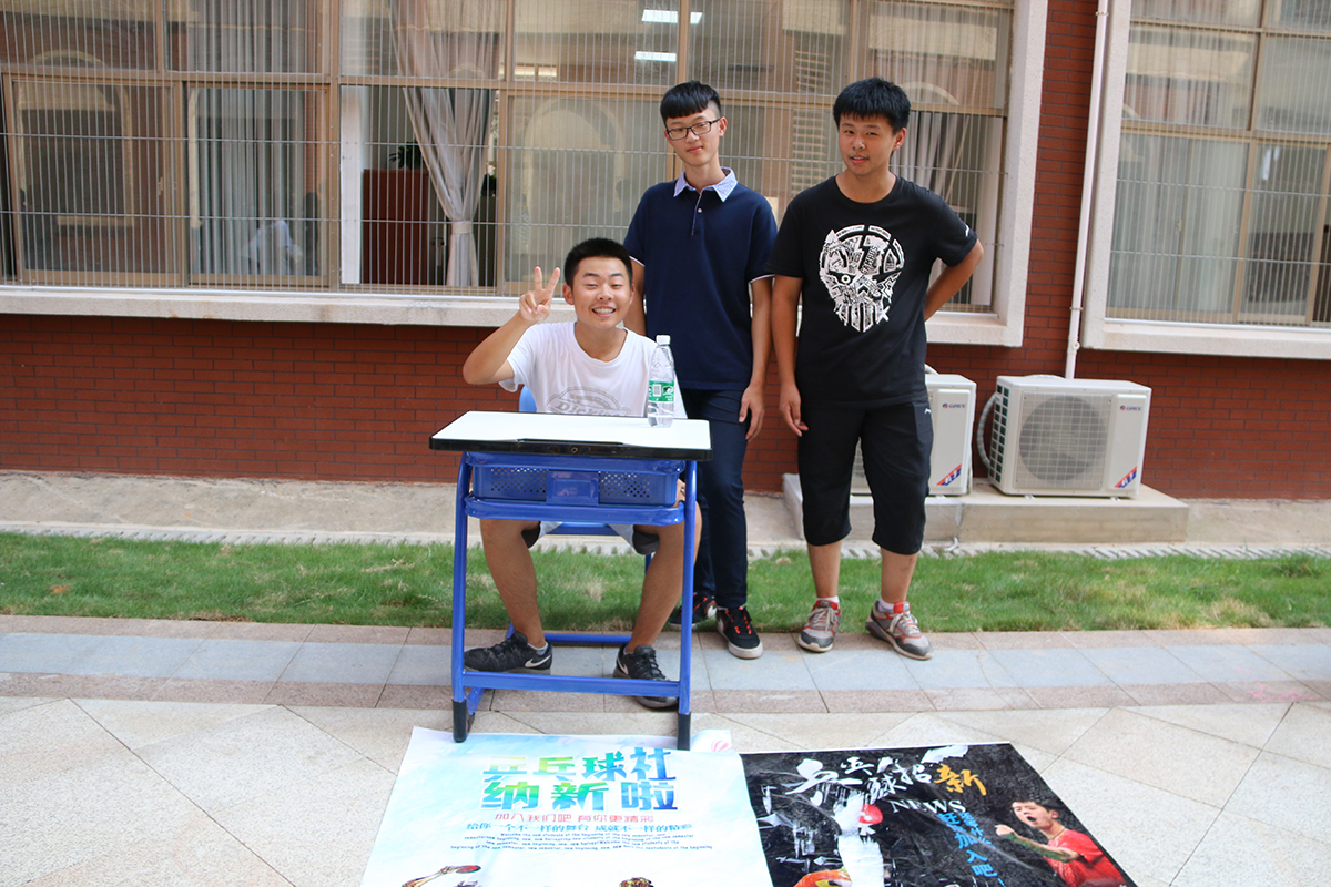 瞧,有活力四射穿着戏服到处宣传的戏剧社;有在社团摊位前用热舞来吸引社员的舞蹈社;有虽然没有大力宣传但依旧吸引了不少同学的“北麓之声”文学社;还有边弹边唱散发着淡淡的文艺气息的吉他社。当然了,篮球社的社员们拿着篮球在教学楼下秀着自己的球技,足球社的同学们也当仁不让的展示着自己的足球技巧,乒乓球社的社员举着大大的张继科和马龙的海报,周围仿佛还有一个月前挥散着的奥运气息……