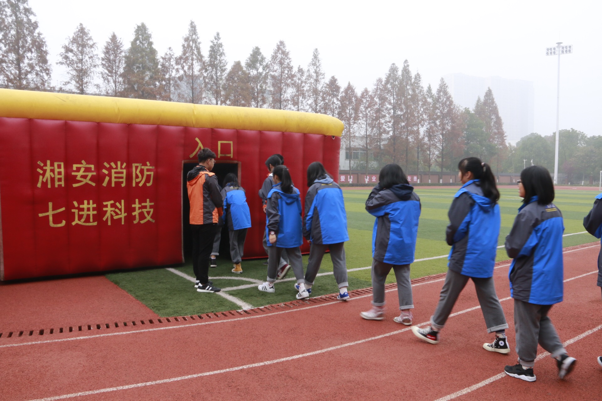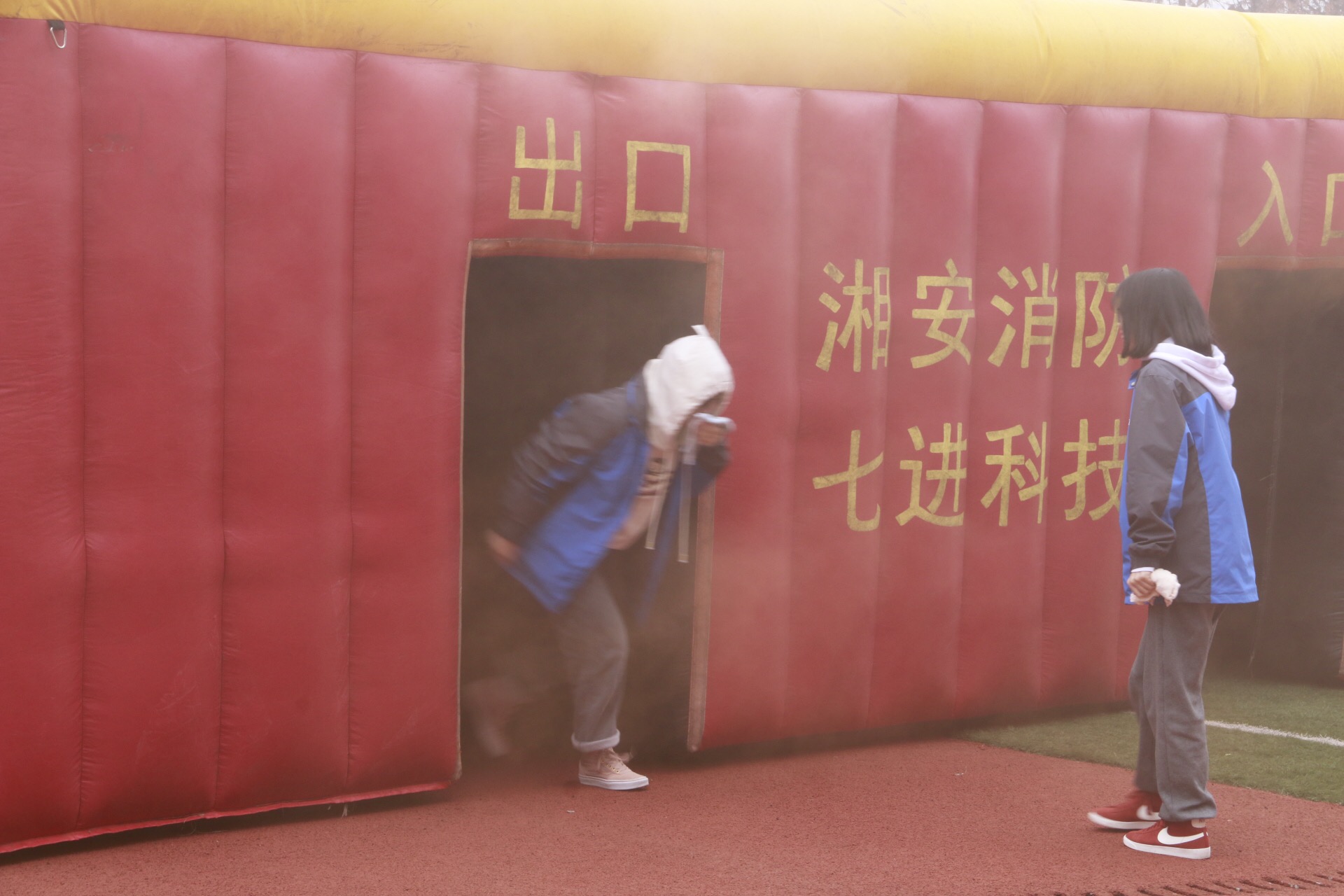 为了提高学生的自救防范意识,做到在发生火警火灾时,能临危不乱,本次消防演习学校专门联合湘安消防将模拟逃生帐篷拉进了校园,学生分批次进入帐篷进行火场逃生体验。