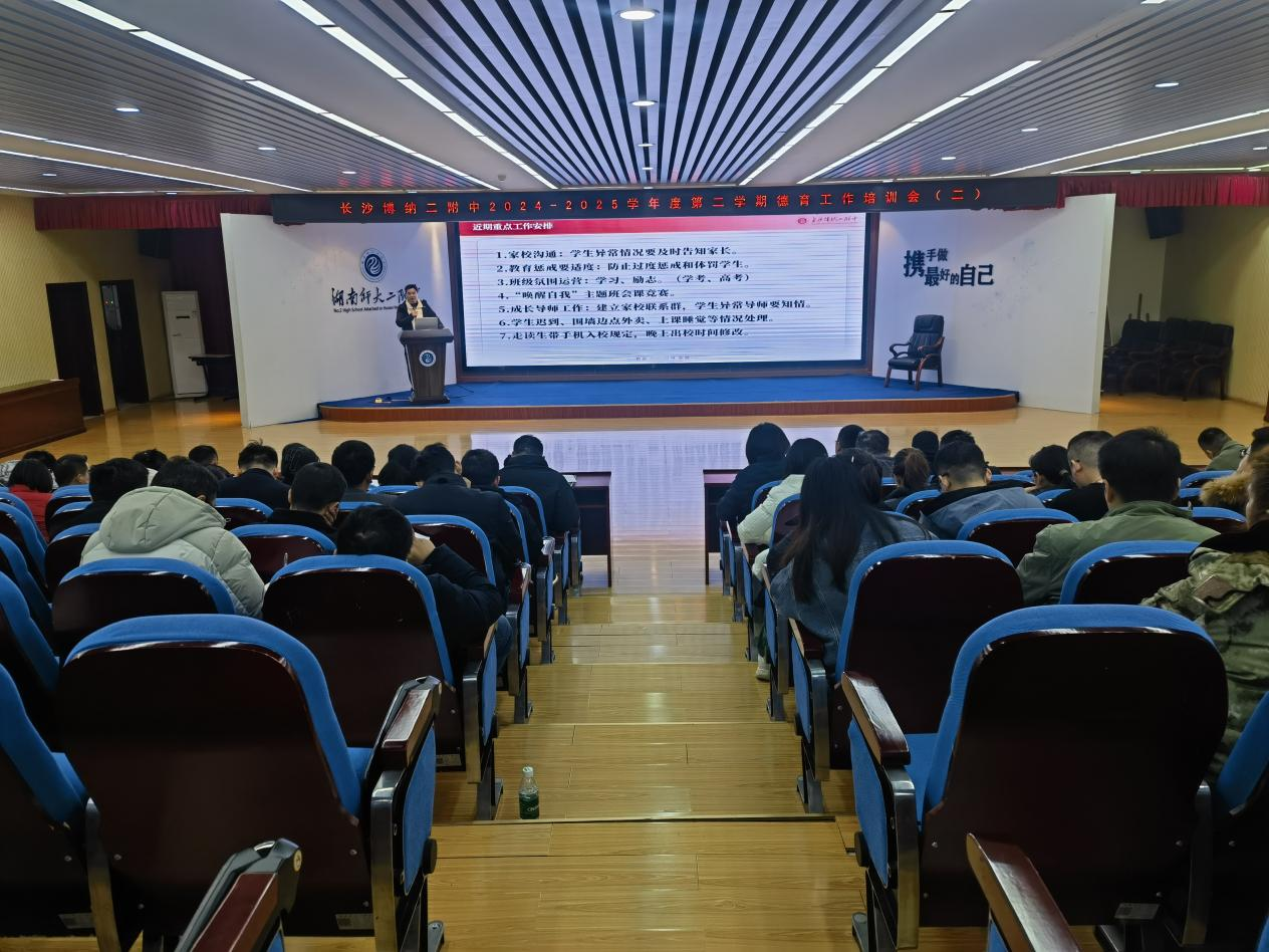 2025年2月24日,长沙博纳二附中召开本学期第二次德育工作培训会,聚焦近期德育工作重点,以家访工作为亮点,推动教育高质量发展。