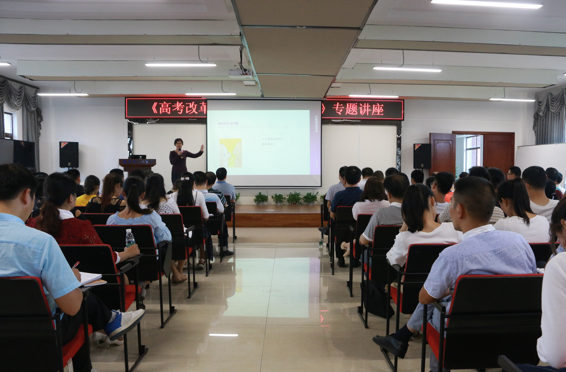9月18日下午三点四十五分,北京师范大学中国教育创新研究院特邀研究员周丽虹教授在我校仁爱楼六楼报告厅精彩开讲《高考改革与中学生生涯教育》,我校全体教师认真聆听了此次讲座,我校团委书记钱佳主持了此次讲座。