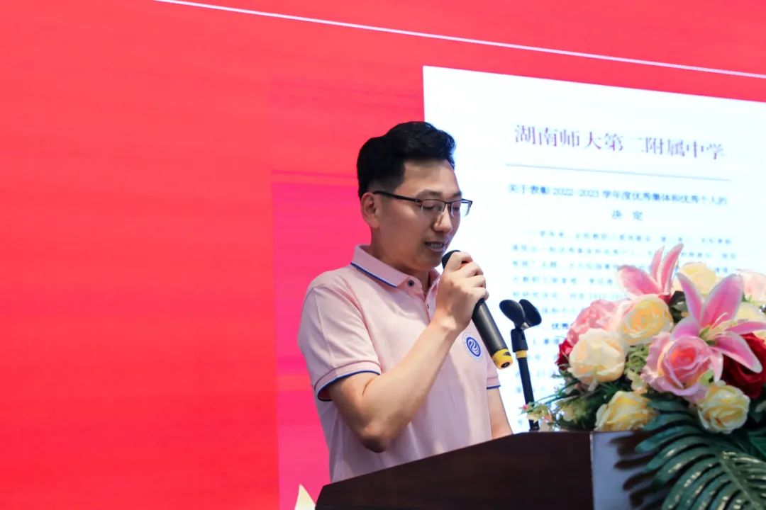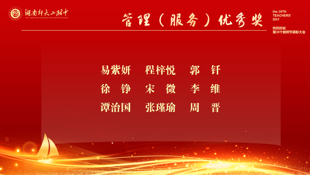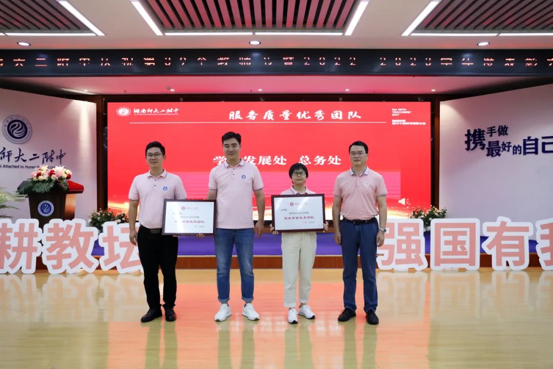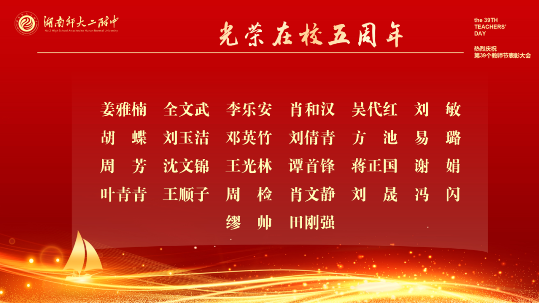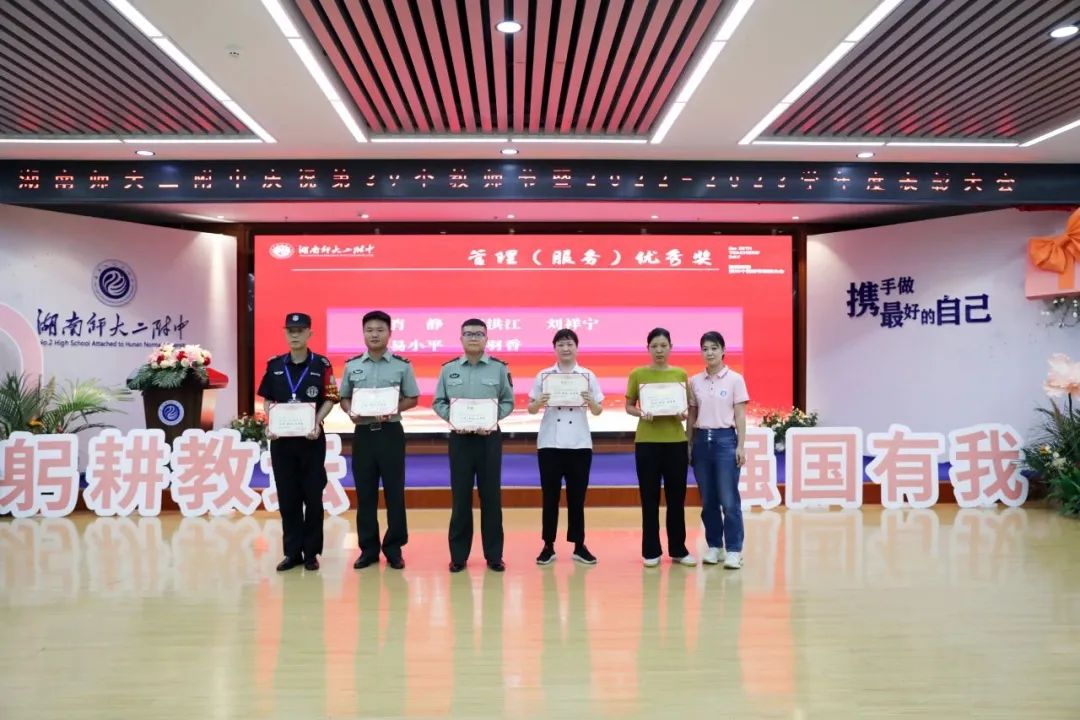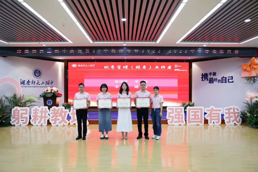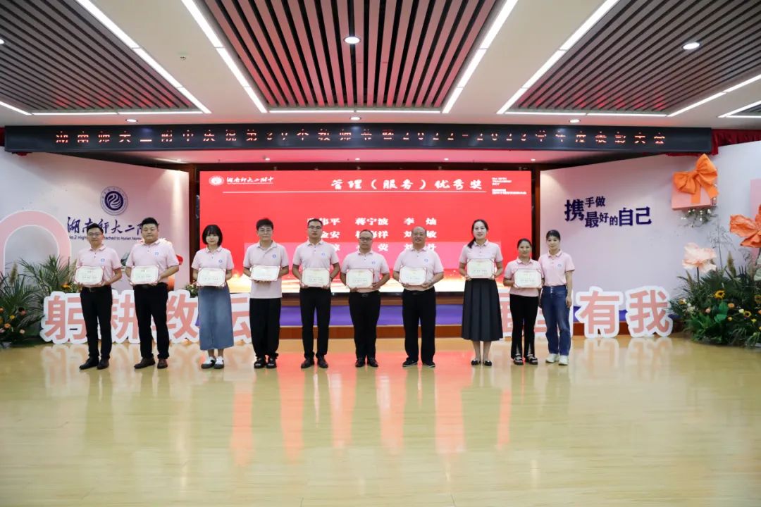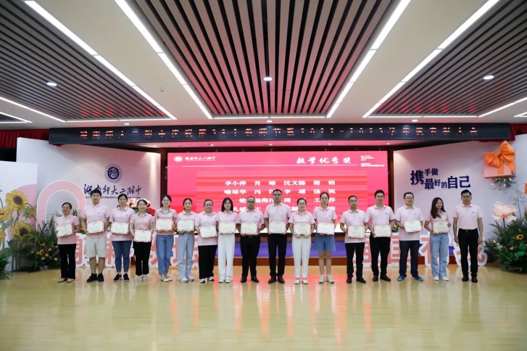 教坛耕耘志不渝,桃李芬芳又一年。9月9日下午,学校在格致楼八楼会议室举行庆祝第39个教师节暨2022-2023学年度表彰大会。湖南博纳教育集团董事长贺志力,二附中校长张胜利、校监张亚丽、副校长汪训贤、副校长张伟平出席本次大会。湘潭市博纳高级中学作为二附中同根同源的兄弟学校,执行校长田志刚、校长助理夏友才、校长助理李安定、校办主任姜美菊等领导受邀和学校全体教职工一同欢度教师佳节。